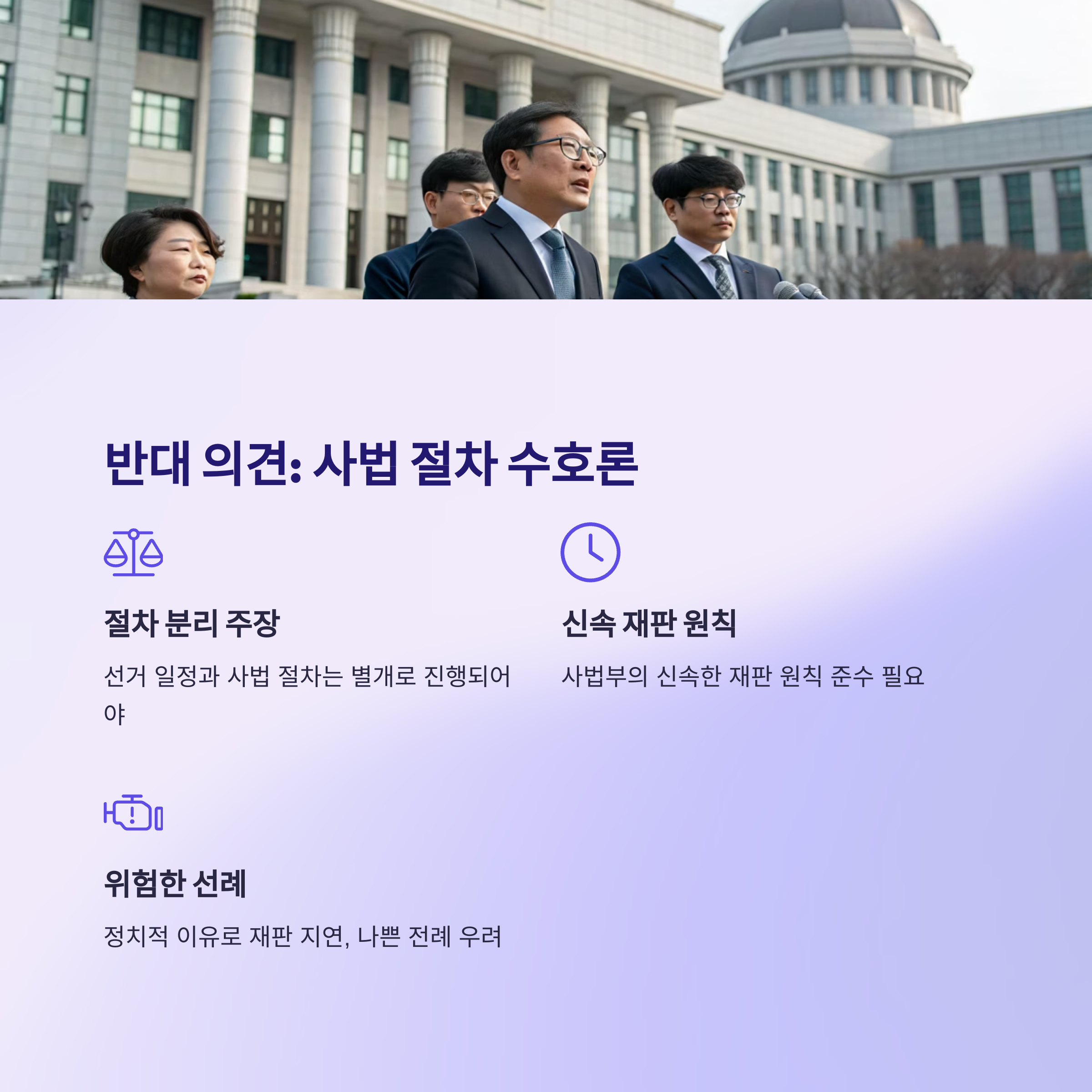 정치 일정에 맞춰 재판 일정을 조정하자는 요구는 그 자체로 위험한 발상입니다.