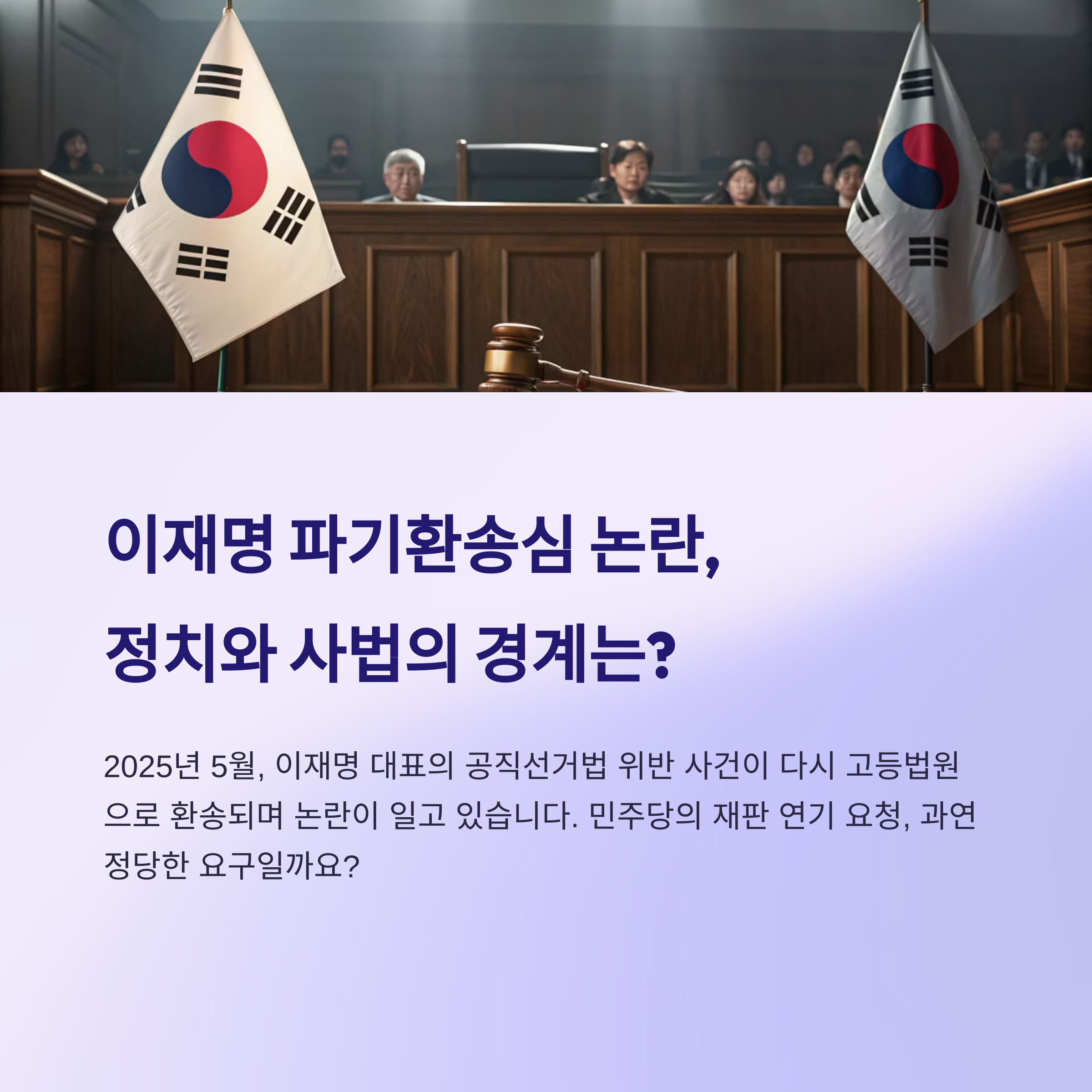 2025년, 이재명 대표의 공직선거법 위반 사건이 다시 고등법원으로 환송되면서, 민주당은 재판 일정을 늦춰야 한다고 주장하고 있습니다. 하지만 이를 두고 정치권과 법조계에서는 논쟁이 거세지고 있습니다.