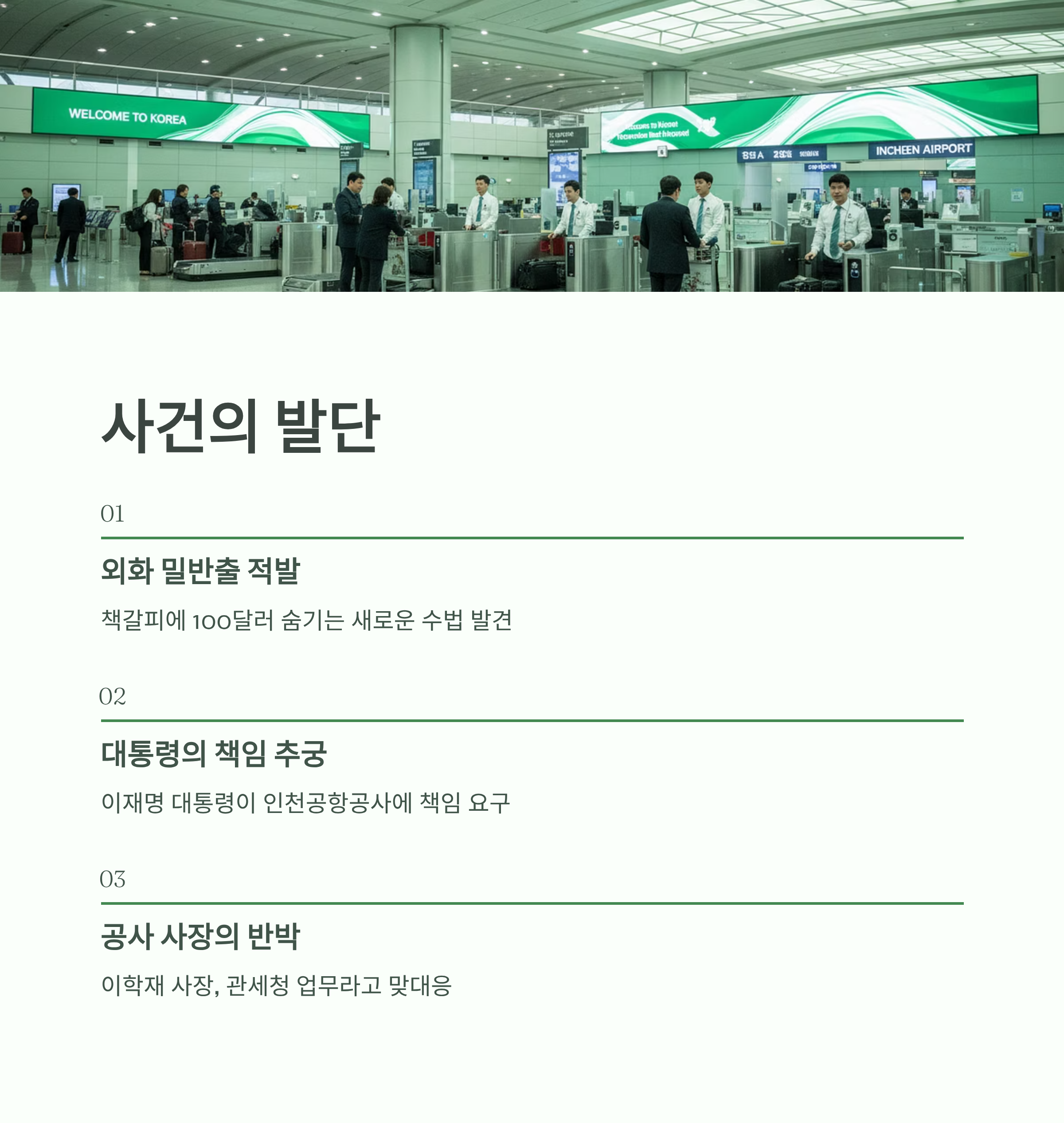 2025년 12월 대한민국 정치 무대에서는 유례없는 갈등 사건이 벌어지고 있습니다. 이재명 대통령과 이학재 인천국제공항공사 사장 간의 공개 설전이 화제가 되고 있는데, 이는 공항 내 외화 반출 단속 책임 논란에서 비롯되었습니다. "책갈피에 숨긴 100달러 밀반출"이라는 새로운 수법이 언론에 보도되면서, 이재명 대통령은 공사에 책임을 요구했지만, 이학재 사장은 이는 관세청 업무라고 반박했습니다.