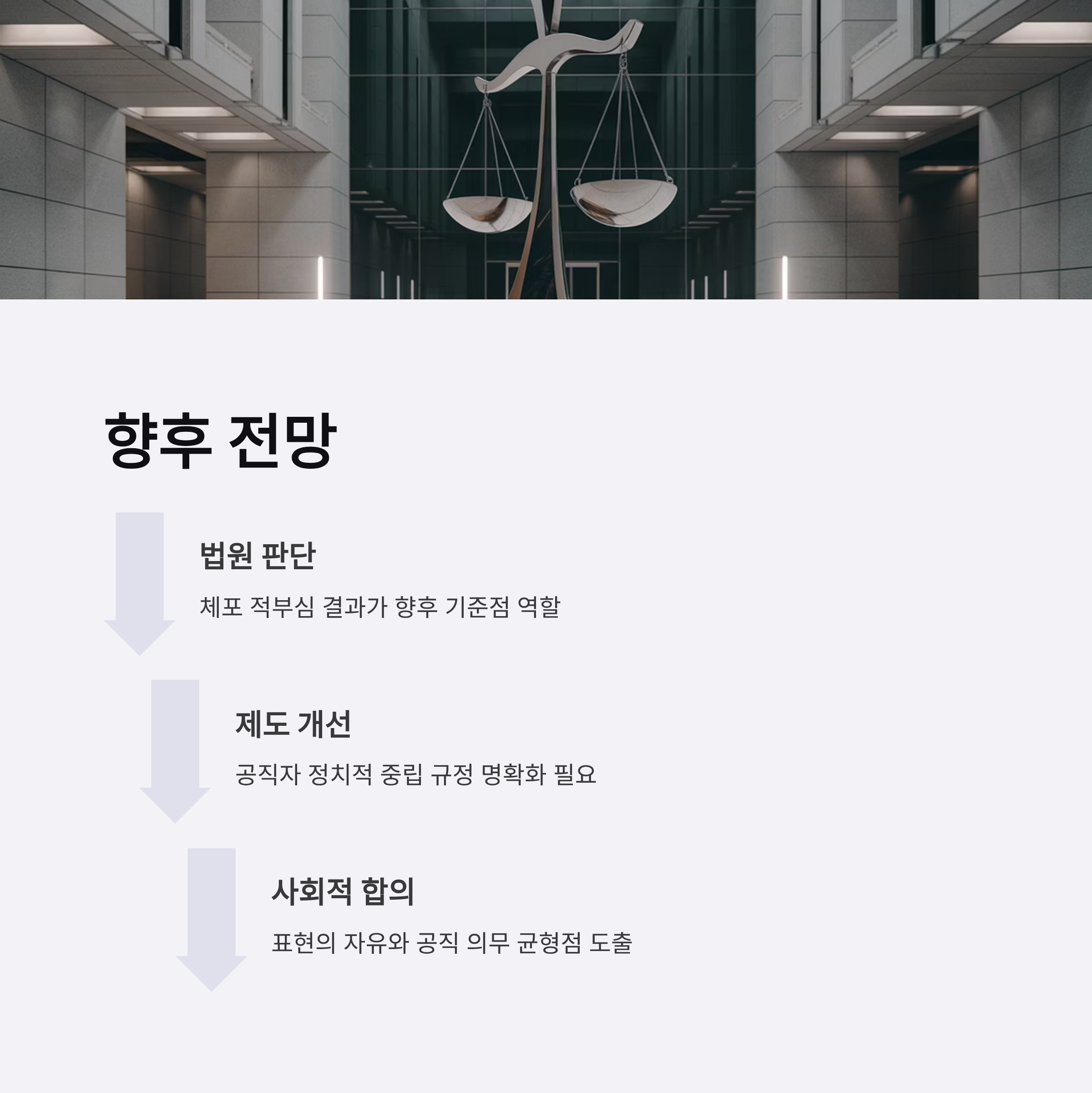 | A. 사회적으로 표현의 자유와 정치적 중립 논의가 선명하게 대두될 것입니다. 또한 공직자 발언 범위와 한계 설정의 중요성이 강조되며, 국민 여론 역시 공직자의 책임과 자유에 대한 새 틀을 요구할 수 있습니다. |