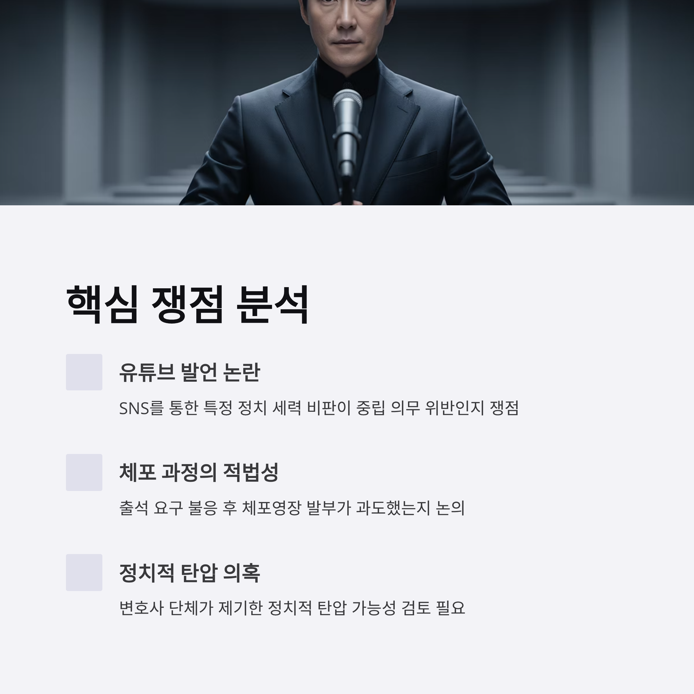 4. 유튜브 및 SNS 발언이 정치적 중립 의무를 침해했는지 논란의 중심에 섬.
