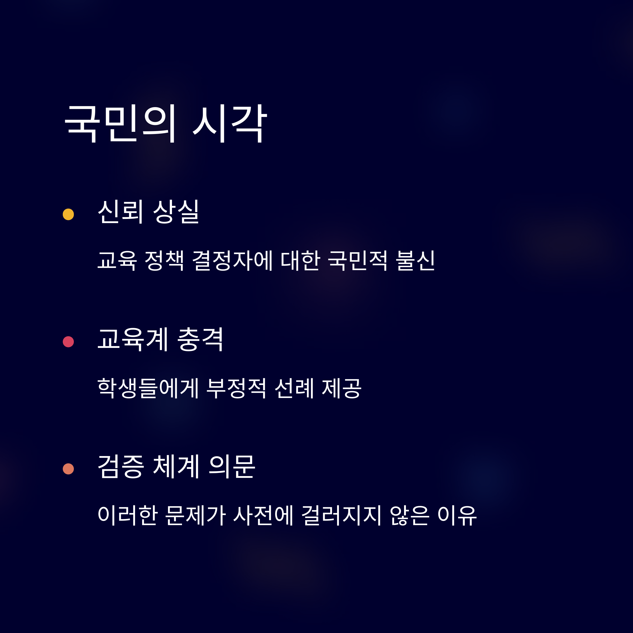 학계와 국민 모두 이번 사안을 교육 정책 관리자에 대한 신뢰 문제로 바라보며 자질 부족을 강력히 비판하고 있습니다.