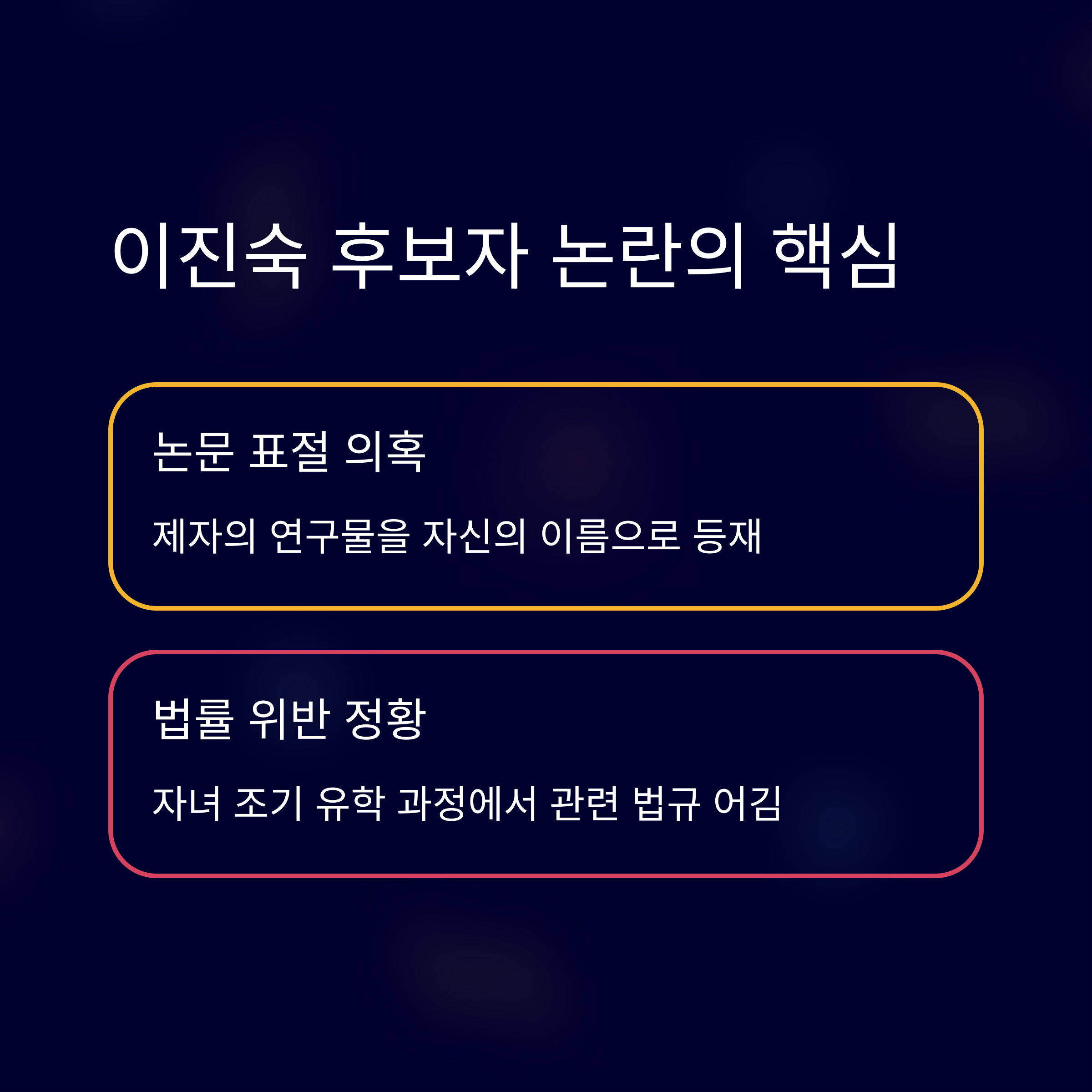 후보자는 자녀의 조기 유학 과정에서 의혹이 될 법률 위반 문제도 발생한 상황입니다. 이는 공직자로서의 무결성에 의문을 제기합니다.