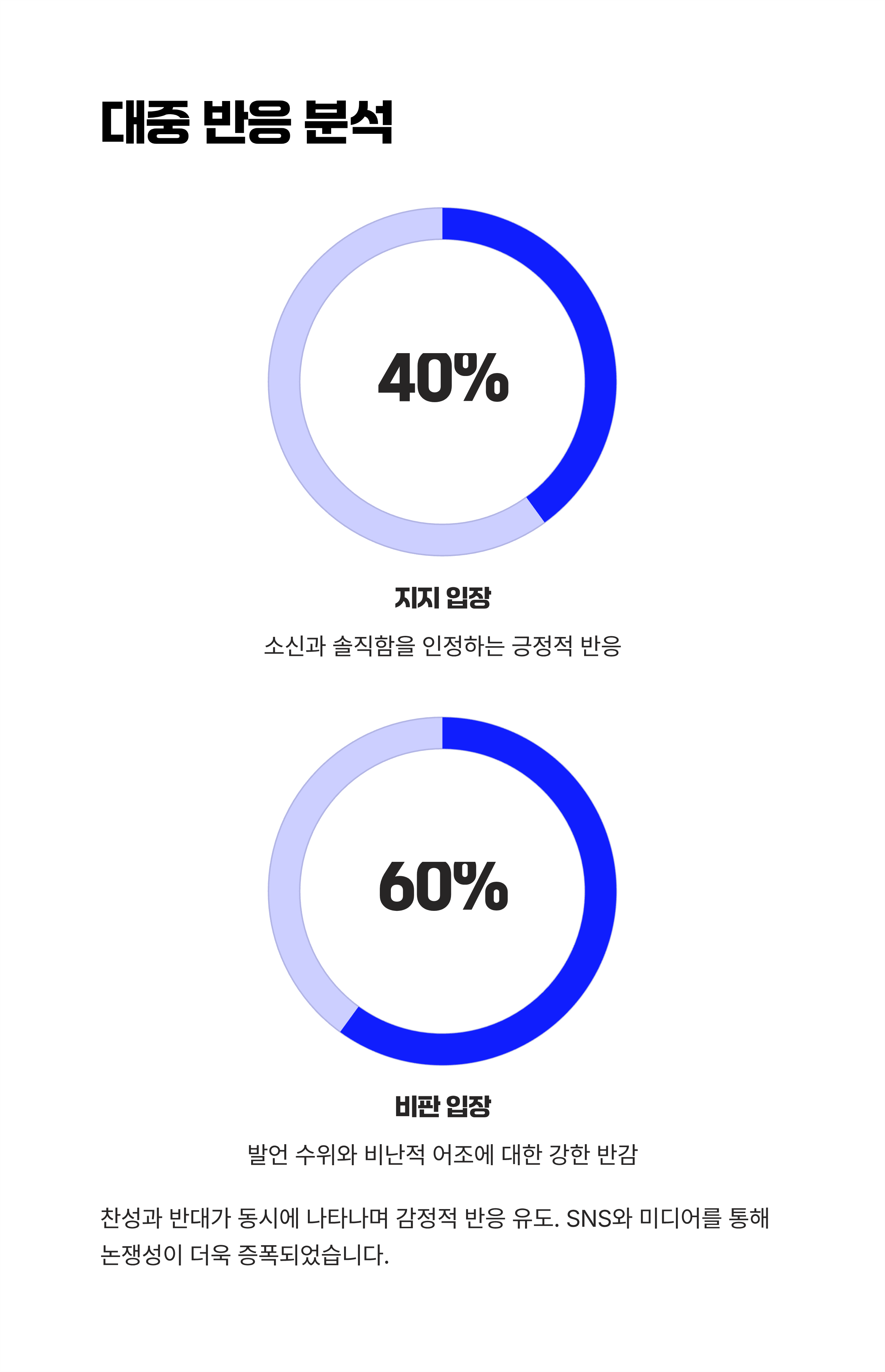 대중은 그의 소신 발언을 수용하거나 비판하며 다양한 반응을 보였습니다.