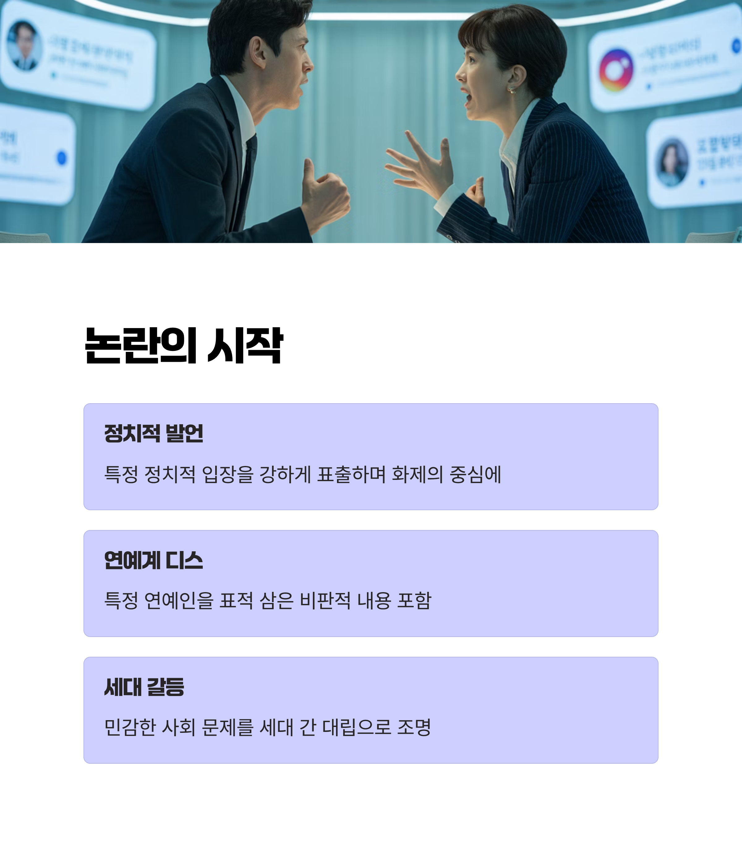 이하늘의 발언은 정치적 견해와 연예계를 다루며 논쟁성을 극대화했습니다.