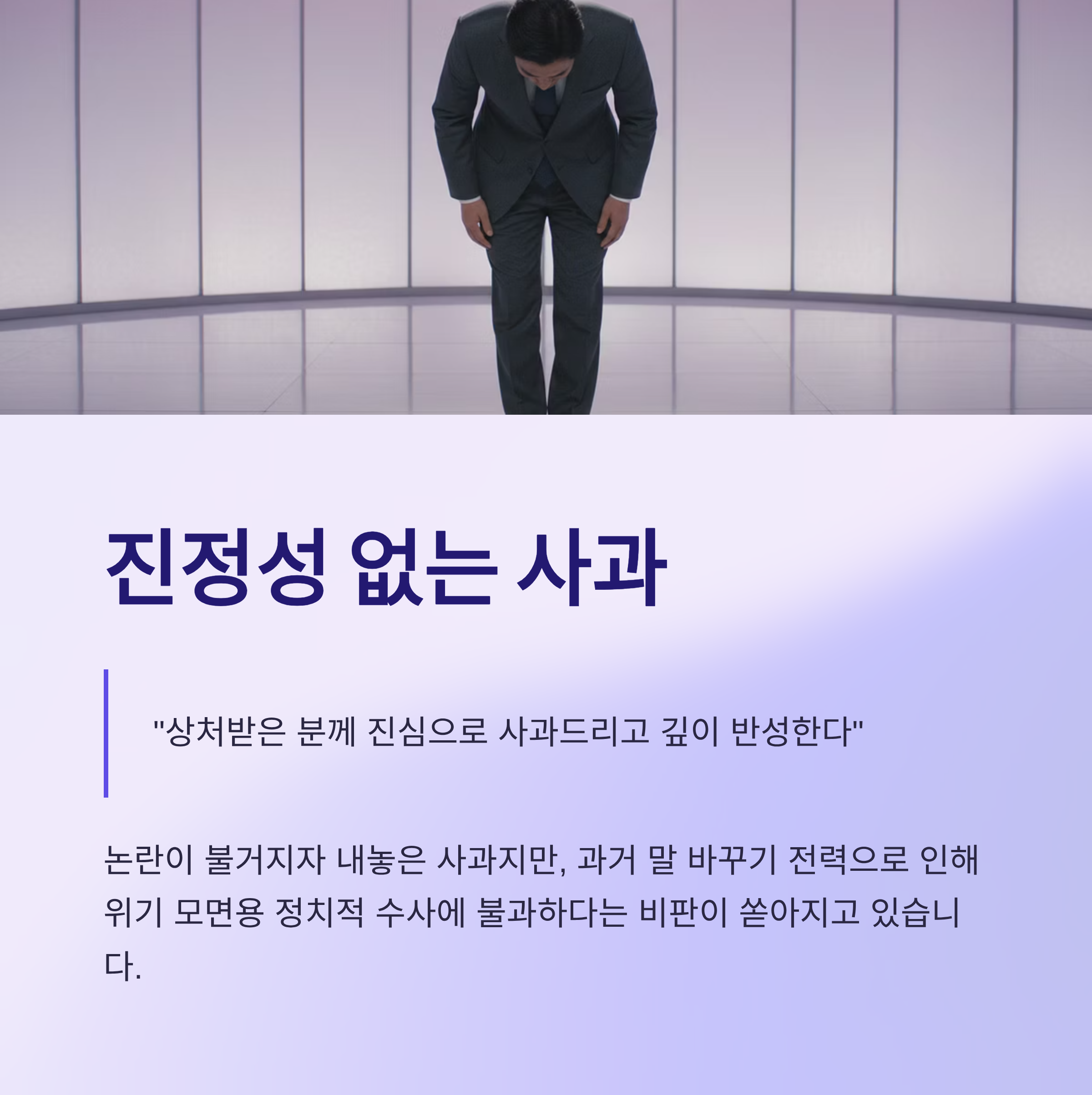 2. 말 바꾸기와 사과: 진정성 의심받는 이중적 태도