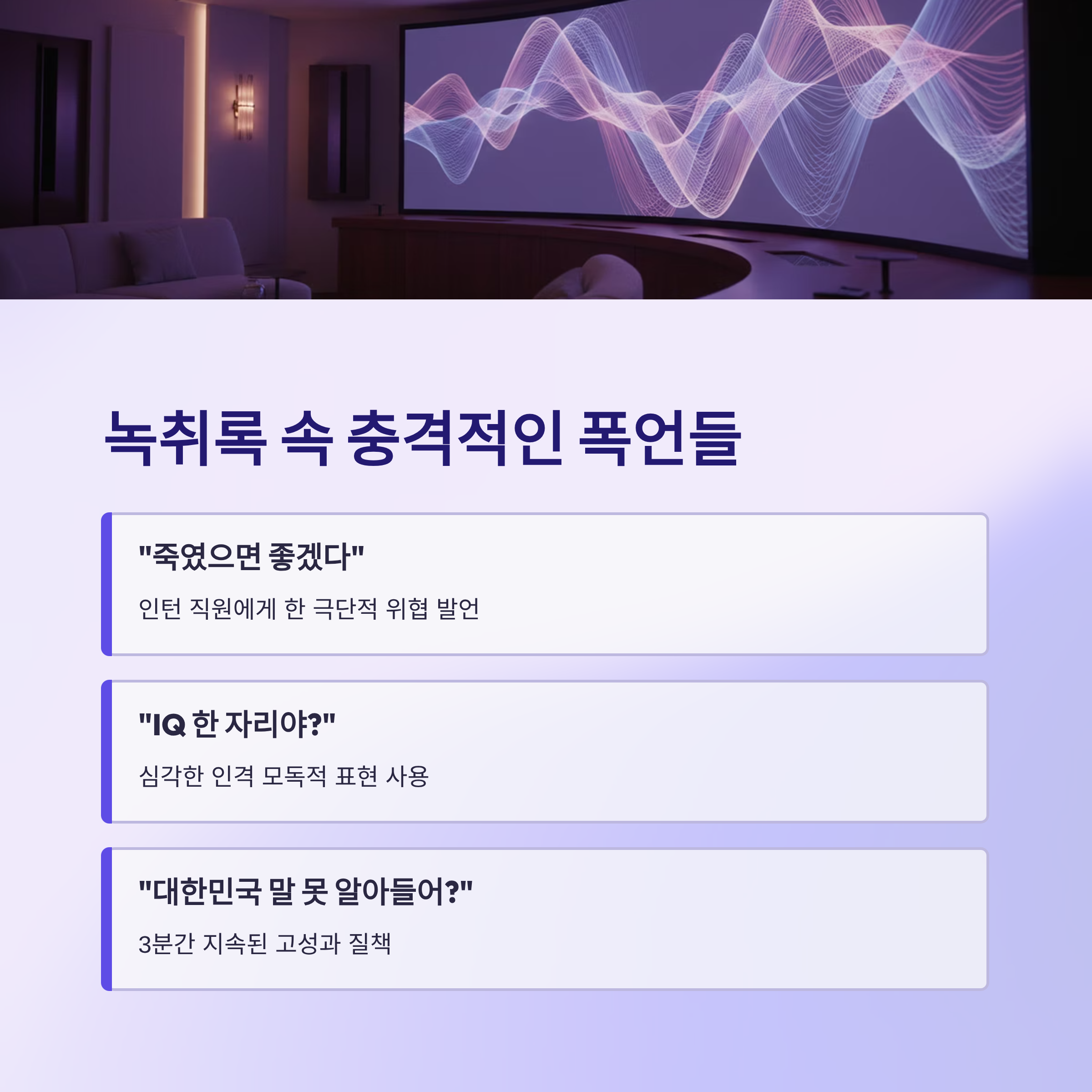 | 폭언 내용 | "죽였으면 좋겠다", "너 IQ 한 자리야?", "대한민국 말 못 알아들어?" 등 |