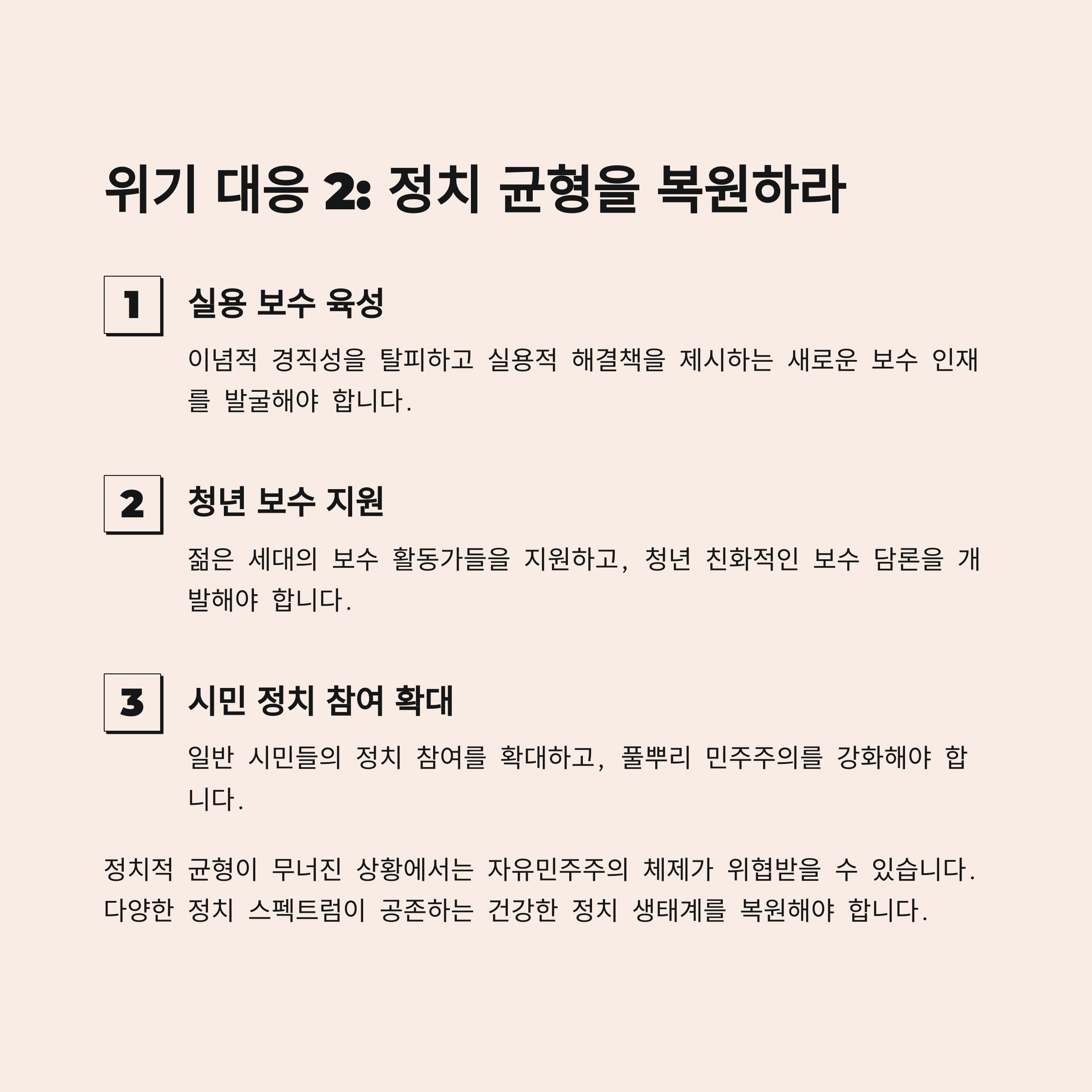 보수가 해야 할 가장 중요한 일은 더 이상 느슨한 개인 지지층에 머물지 않고, 조직적이고 체계적인 국민 저항 시스템을 만드는 것입니다.