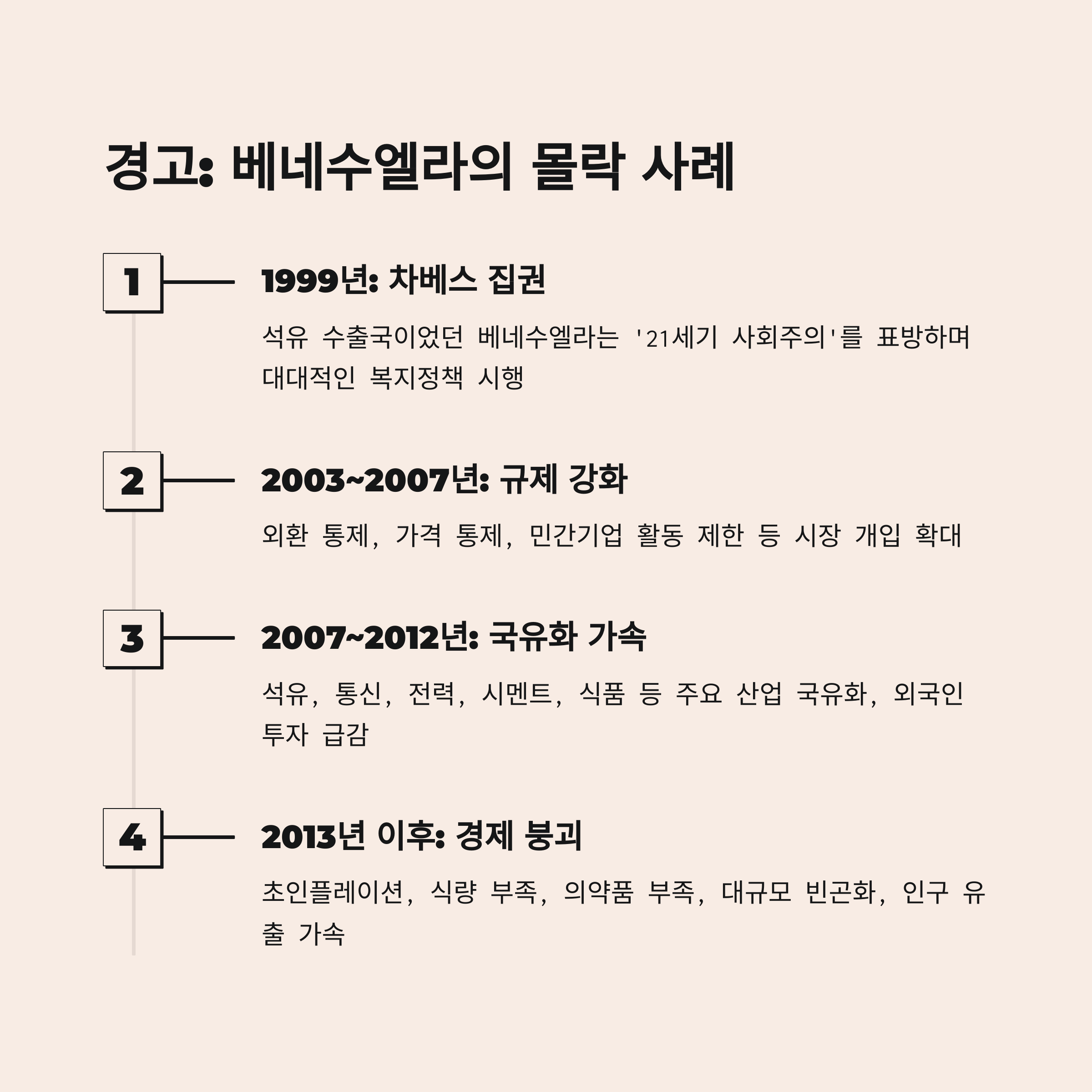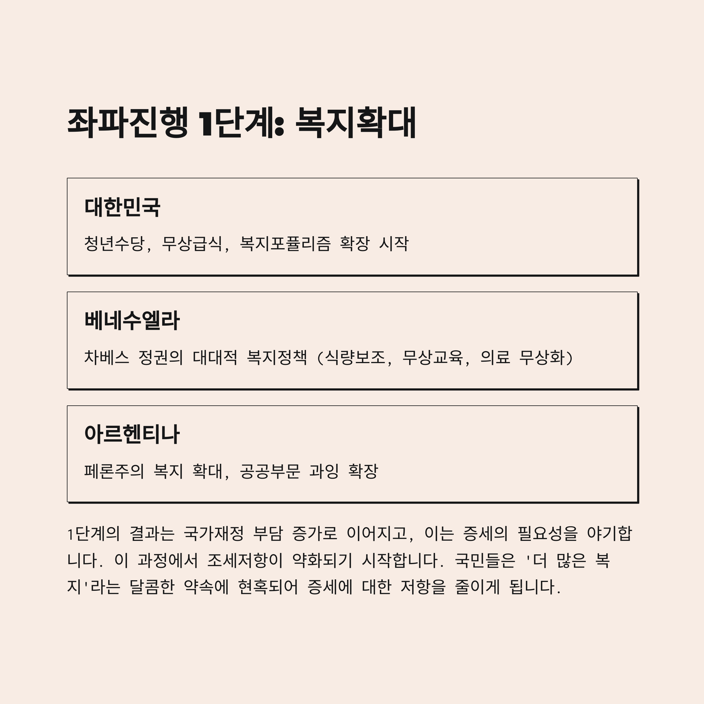 이들 국가는 모두 '복지 확대 → 시장규제 → 노조강화 → 국유화 → 독재화'라는 동일한 경로를 밟았습니다.