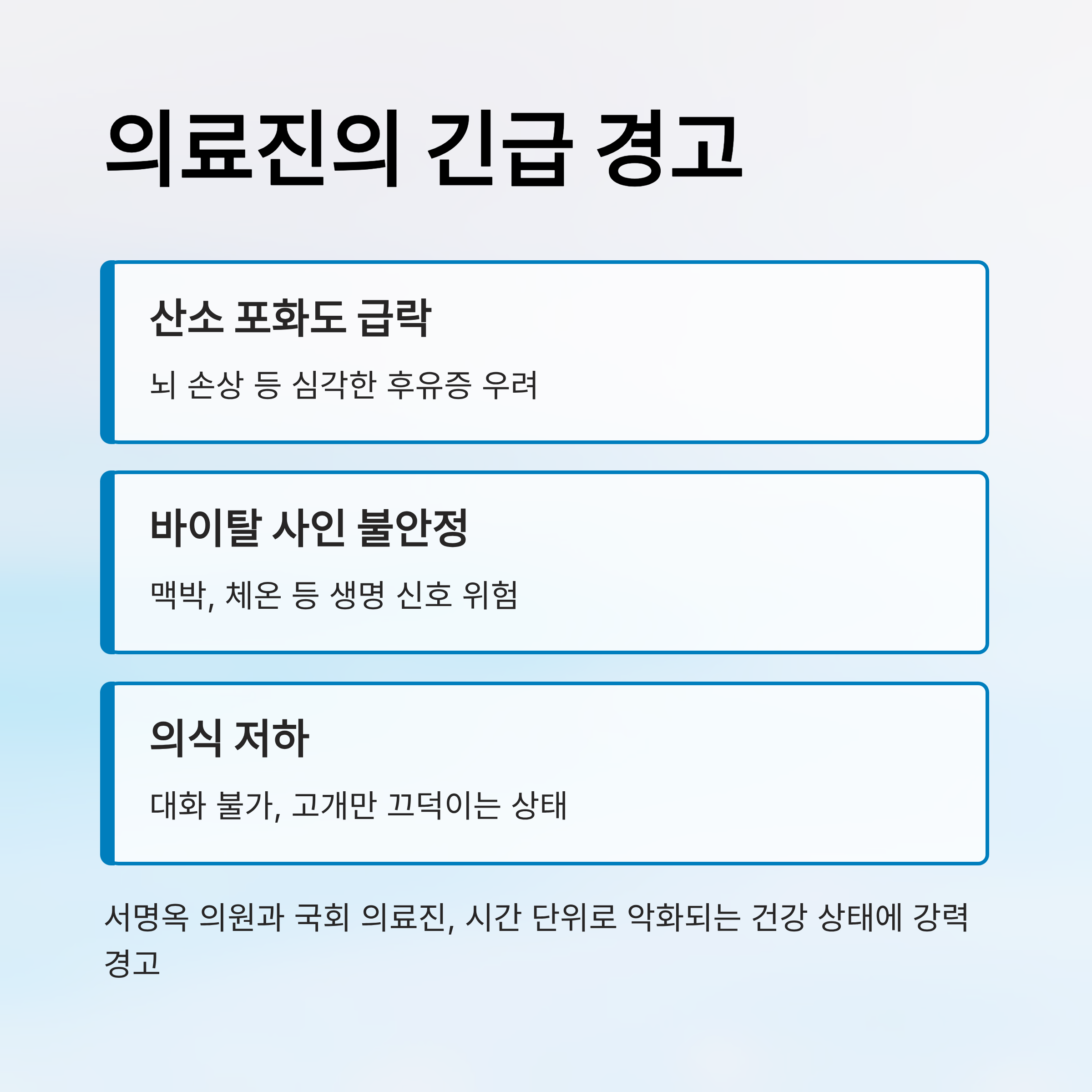 | 산소 포화도 | 위험 수치 기록, 뇌 손상 등 심각한 후유증 우려 |
