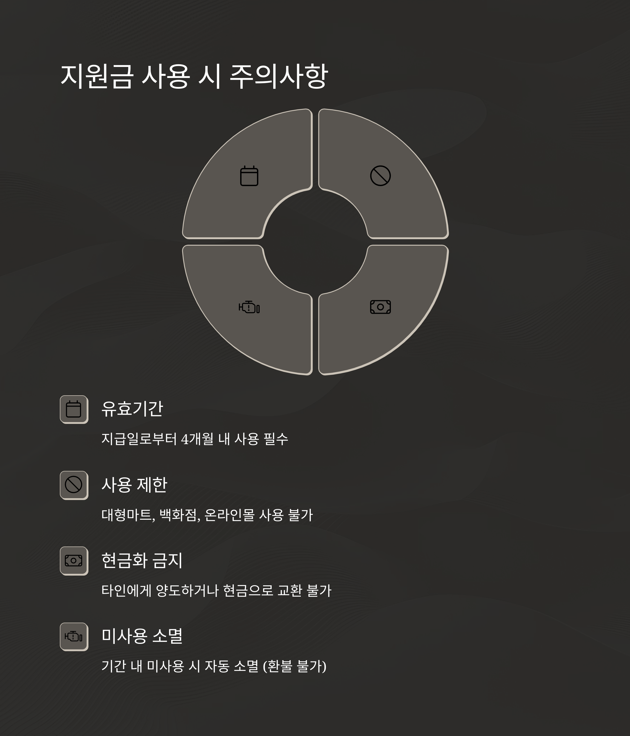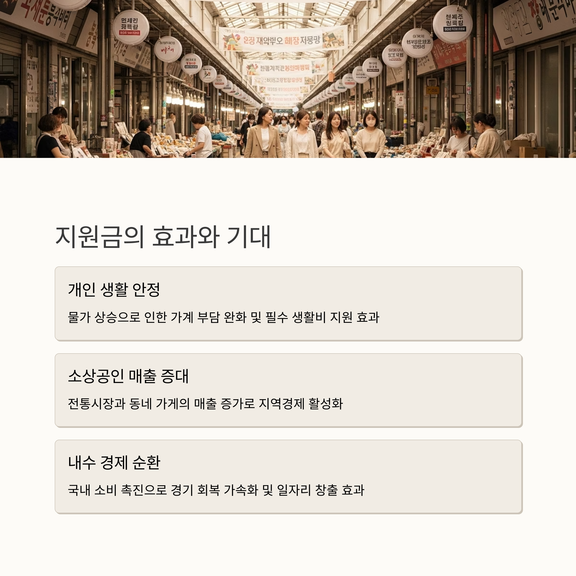 하지만 사용처 제한과 유효 기간(4개월)으로 인해 일부 국민은 불편함을 겪을 수 있습니다. 특히 온라인 쇼핑이나 대형마트 이용이 많은 현대 소비자 습관과 맞지 않는다는 비판도 존재합니다. 실질적인 소비 촉진 효과를 위해선 이러한 제약의 개선이 요구됩니다.