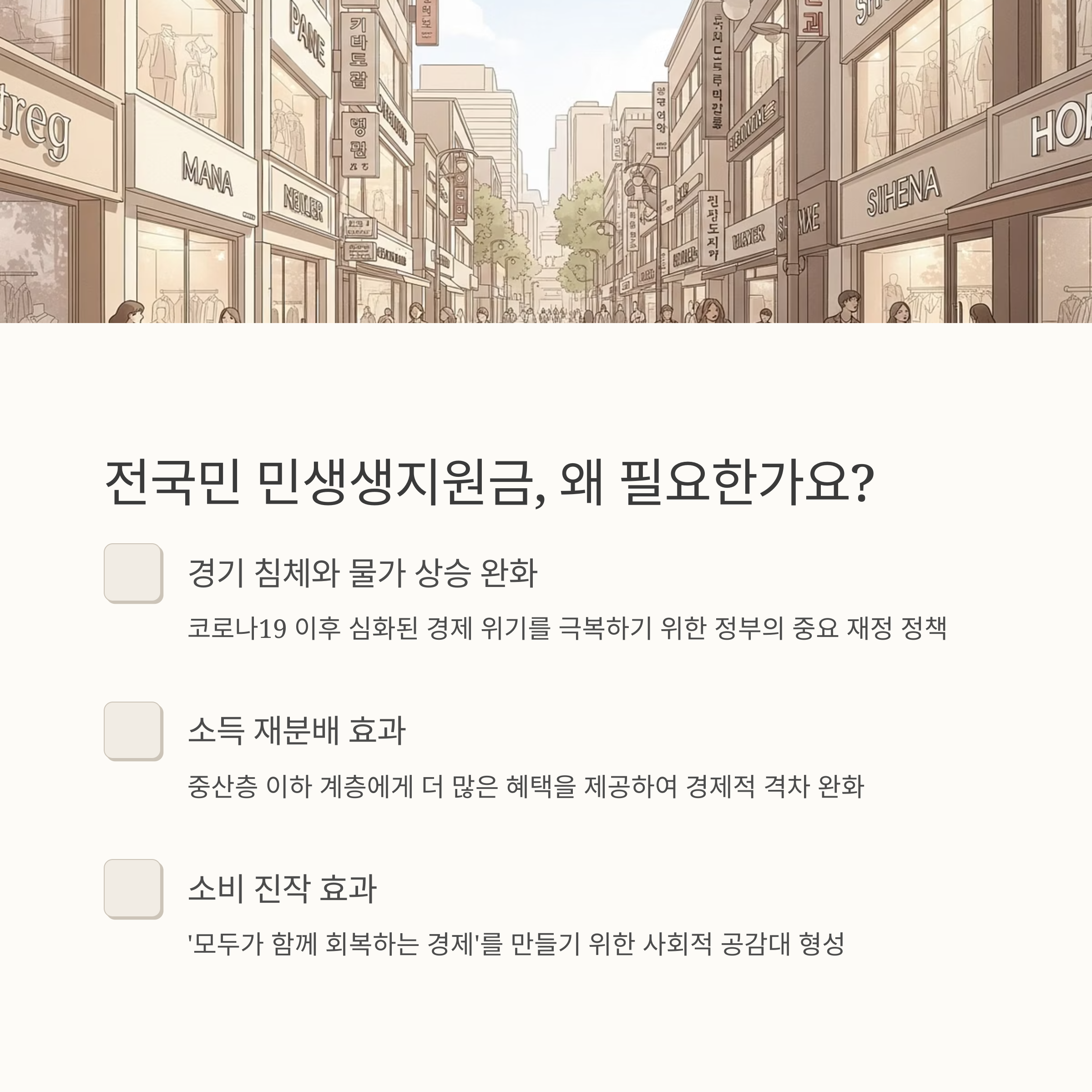 전국민 지원금은 코로나19 이후 심화된 경기 침체, 물가 상승, 청년층 실업률 증가 등 복합적 경제 위기를 완화하기 위한 정부의 재정 정책 중 하나입니다. 소득 재분배 효과와 소비 진작을 동시에 노리는 이 정책은 특히 중산층 이하 계층에게 긍정적인 영향을 줄 것으로 기대됩니다.