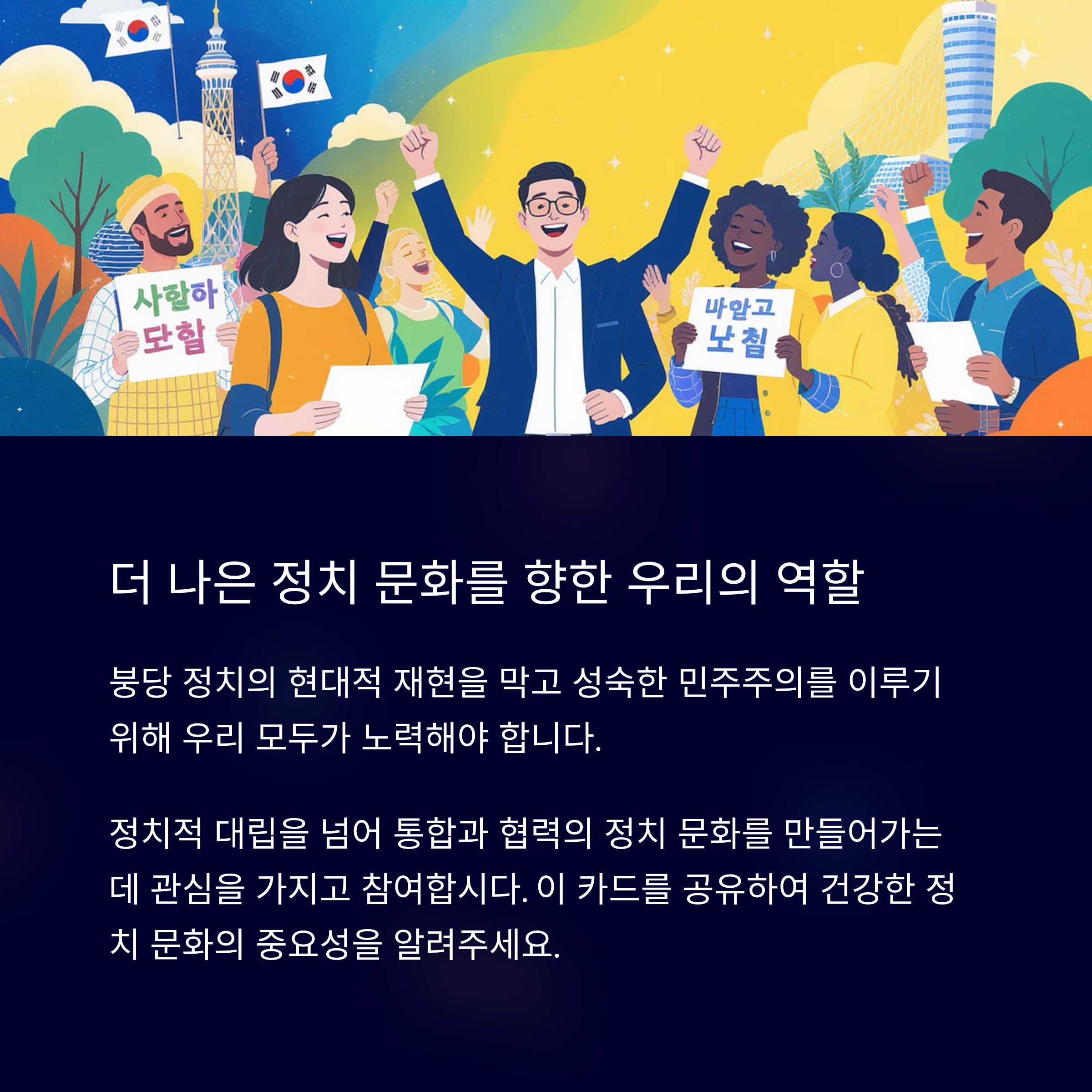 또한, 과거 붕당정치의 폐단을 오늘날의 정치에 비추어 보며, 국민과 사회 전체의 이익을 최우선으로 생각하는 새로운 정치 모델이 요구됩니다. 정치적 대립을 해소하고 사회 통합을 이루기 위한 정책적 제안과 시스템 개선이 필요합니다. 이를 통해 우리는 더 나은 국민의 삶과 안정적인 정권 운영을 도모할 수 있을 것입니다.