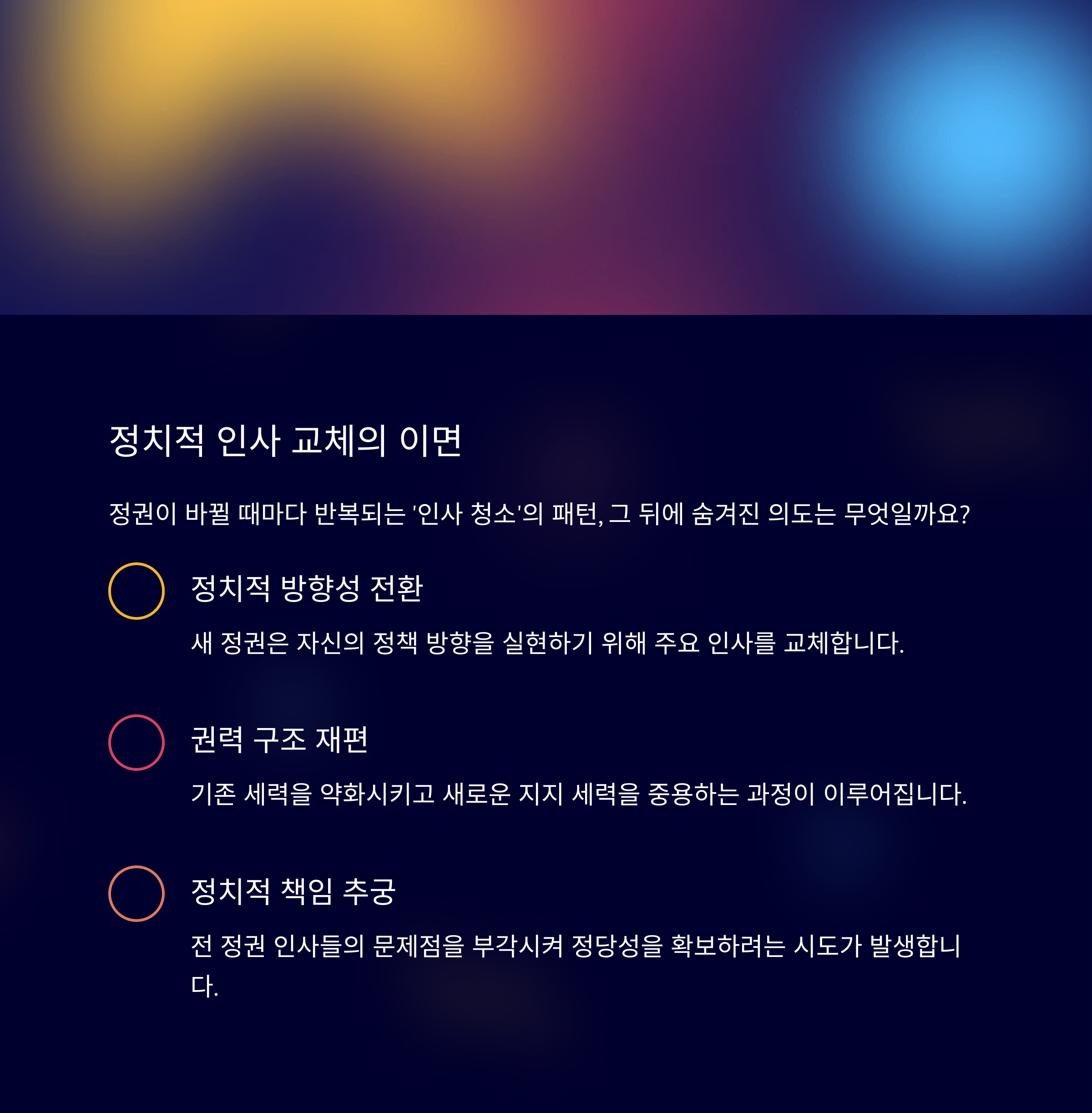 - 서론: 정권 교체와 인사 압박의 문제
