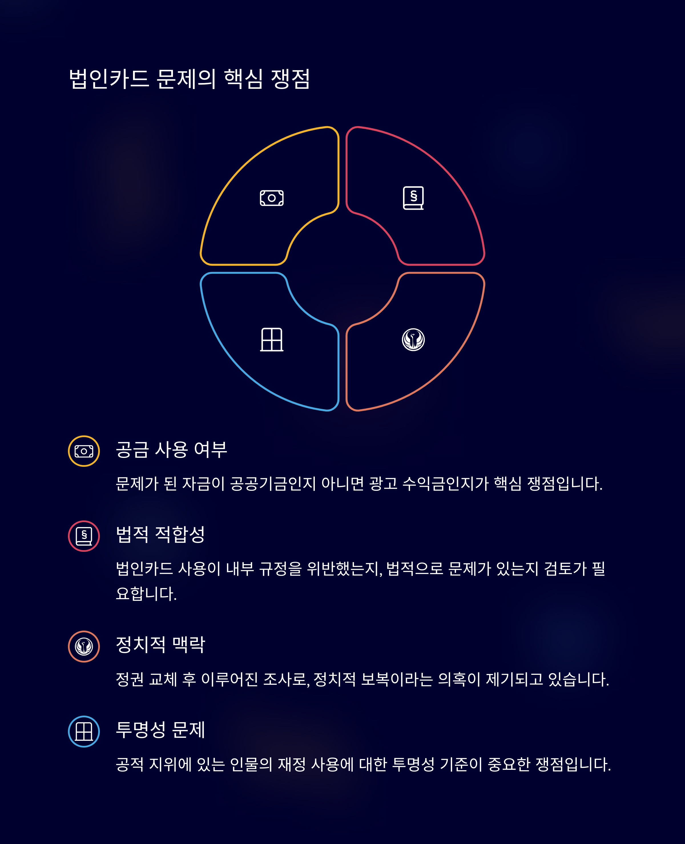 - 정치적 논란으로 부각된 법인카드 문제