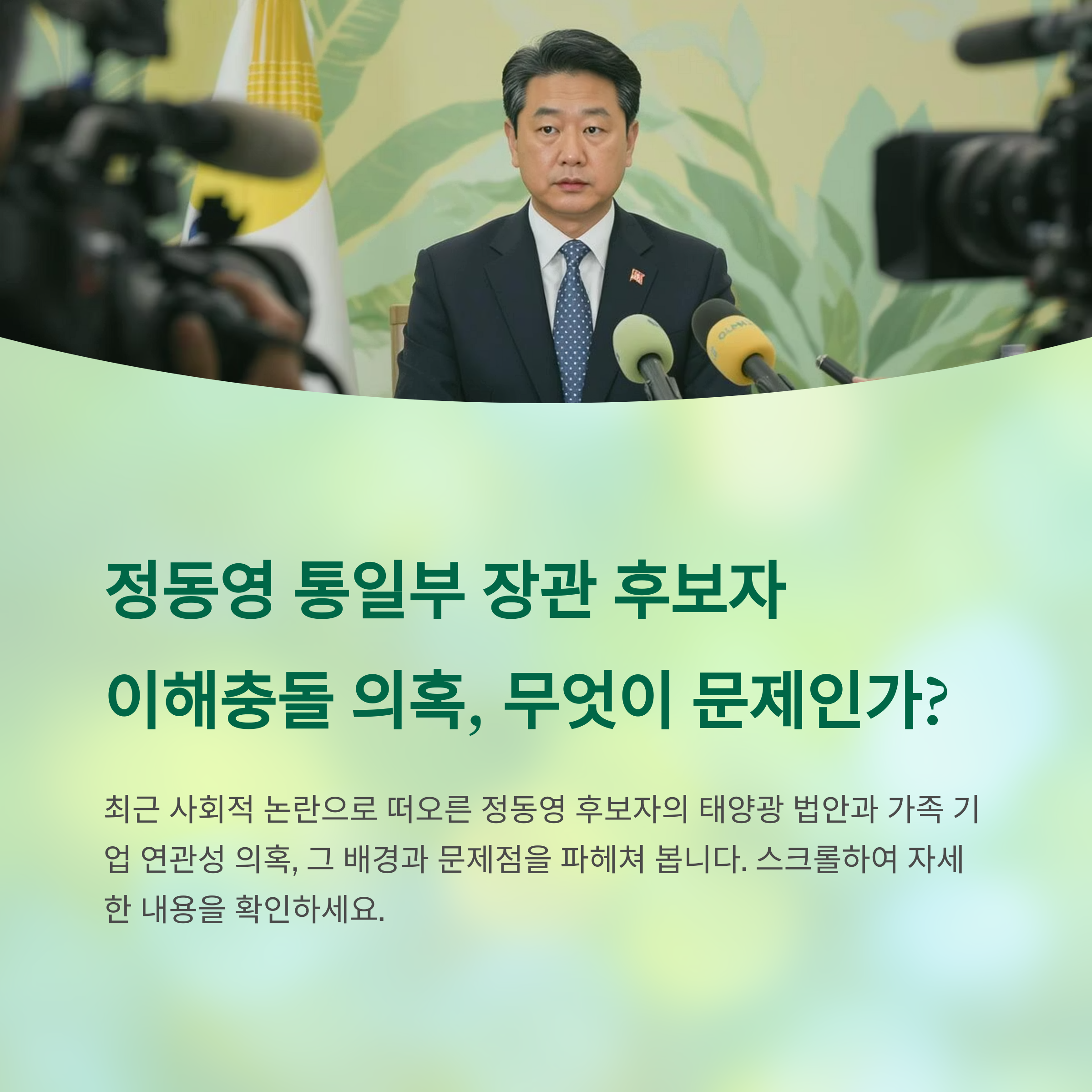 관련 태그 정동영 논란, 공직자 비리, 태양광 사업, 이해 충돌, 이재명 정부, 공직자 책임, 정치 윤리