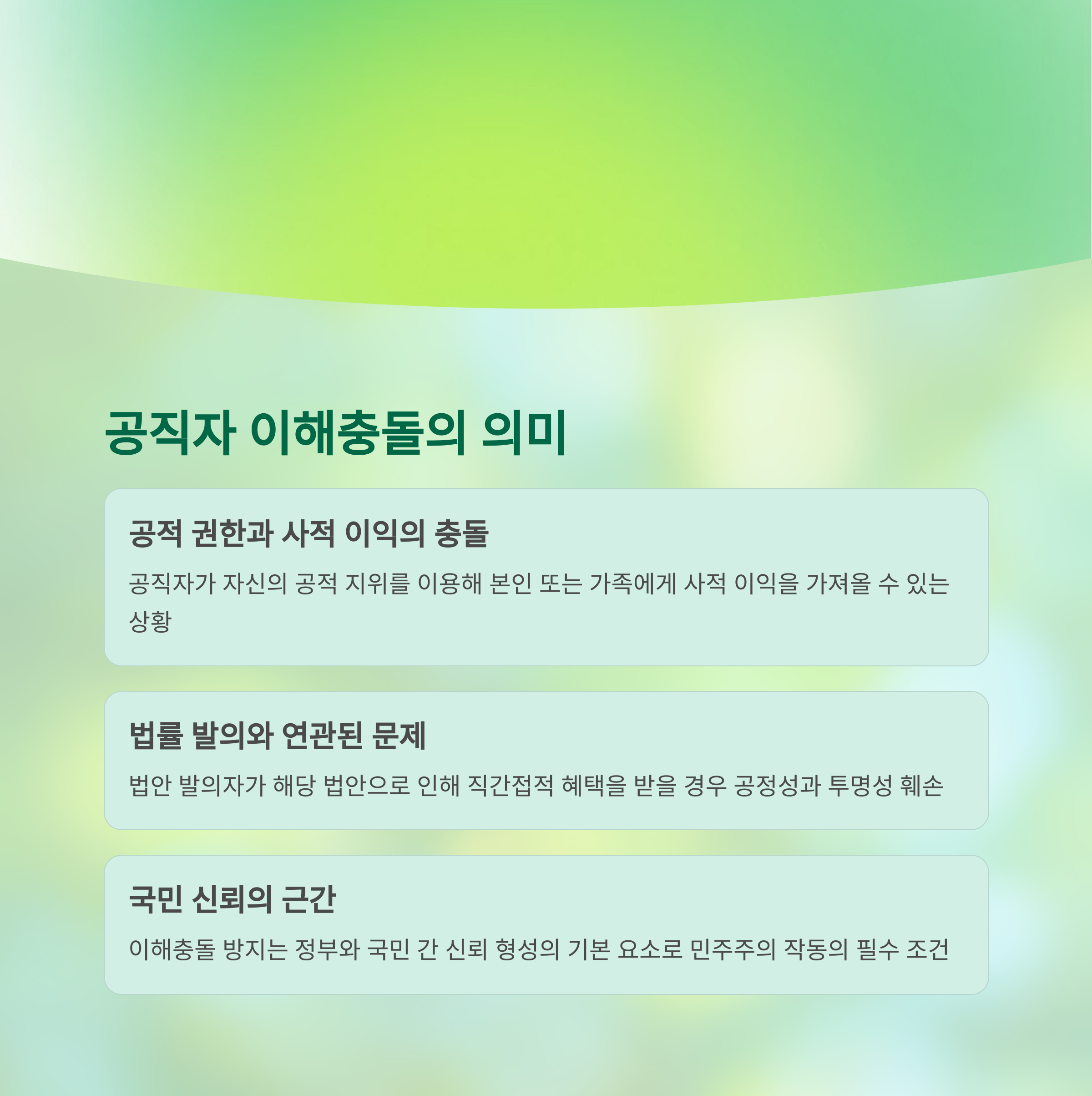 3. 이재명 정부는 이번 논란과 함께 여러 공직자의 이해 충돌 및 비리 사건들이 겹치며 국민적 신뢰 회복 필요성에 직면해 있습니다.