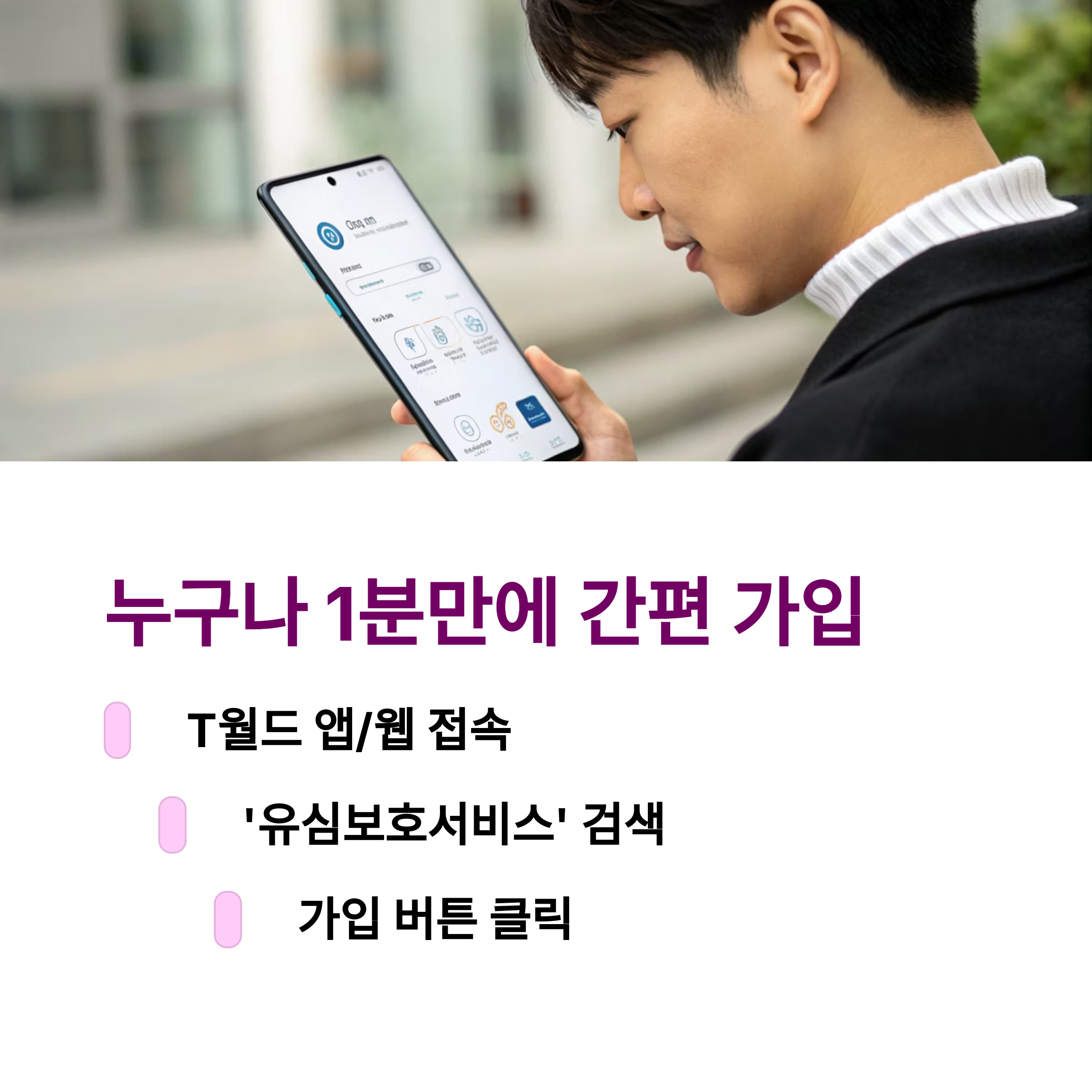 SKT 홈페이지 또는 T월드 앱에서 간편하게 가입할 수 있어요.