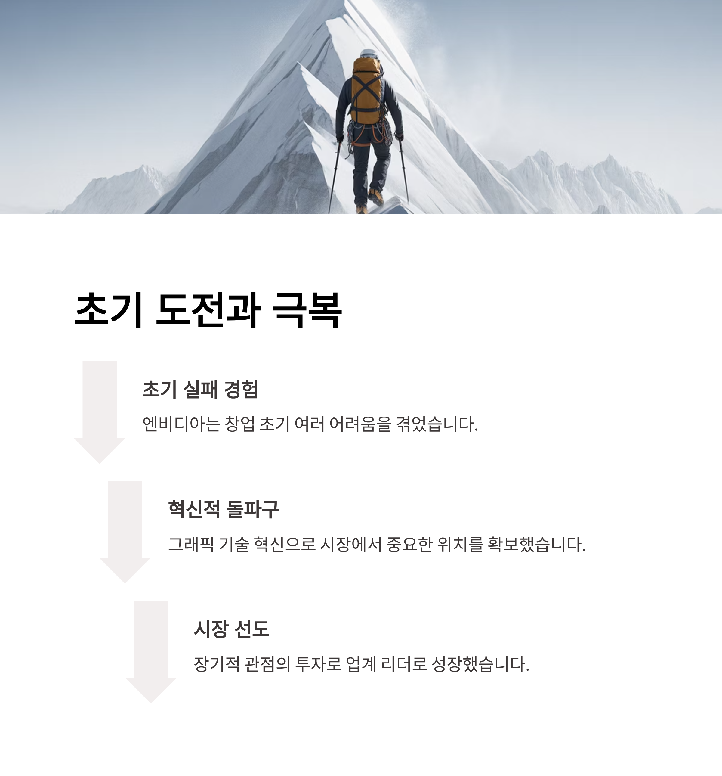 - 엔비디아는 초반엔 실패를 경험했지만 혁신적인 그래픽 기술 개발을 통해 시장에서 중요한 위치를 차지했습니다.