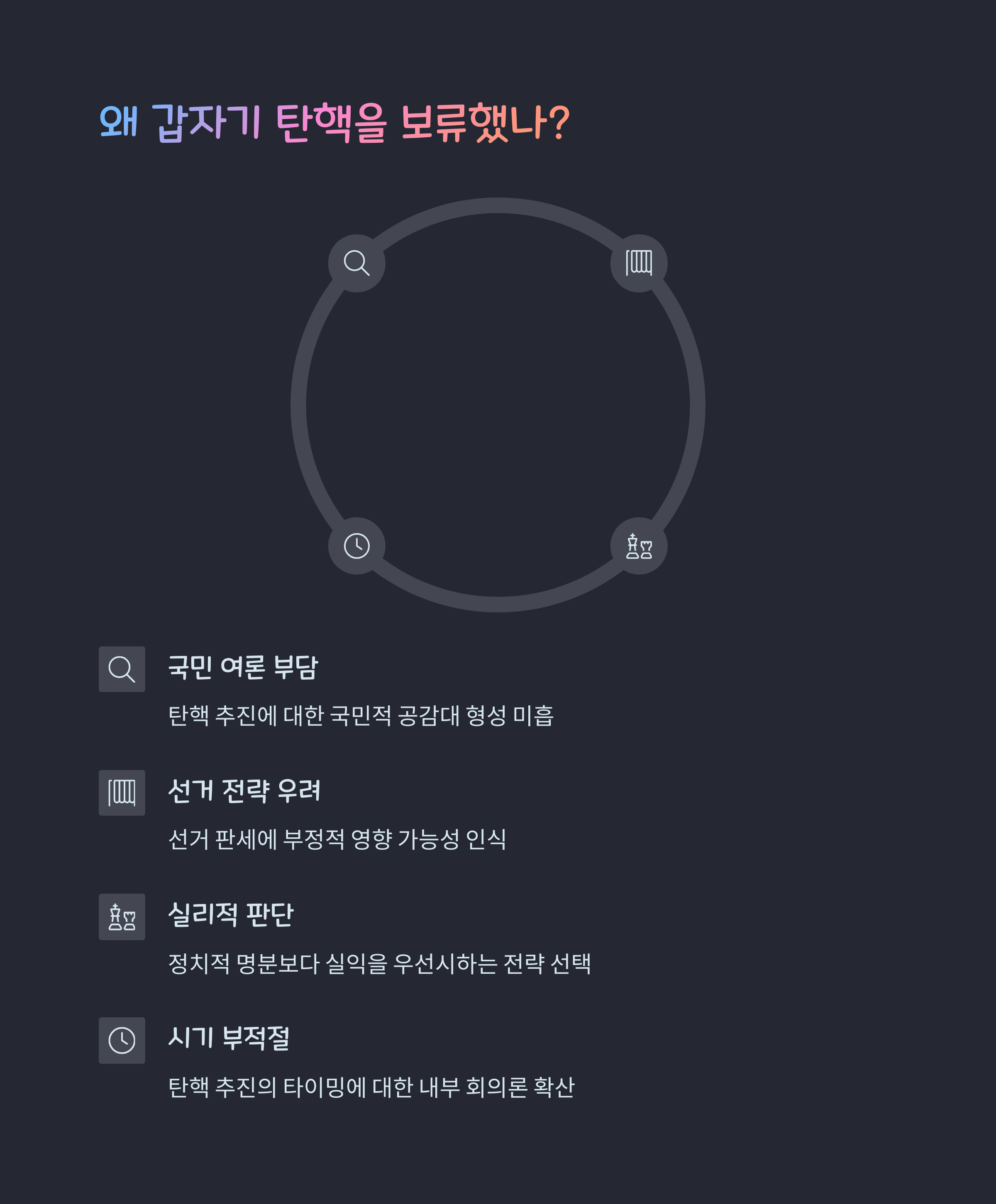 - 핵심 요약: 탄핵 추진과 보류 결정의 배경