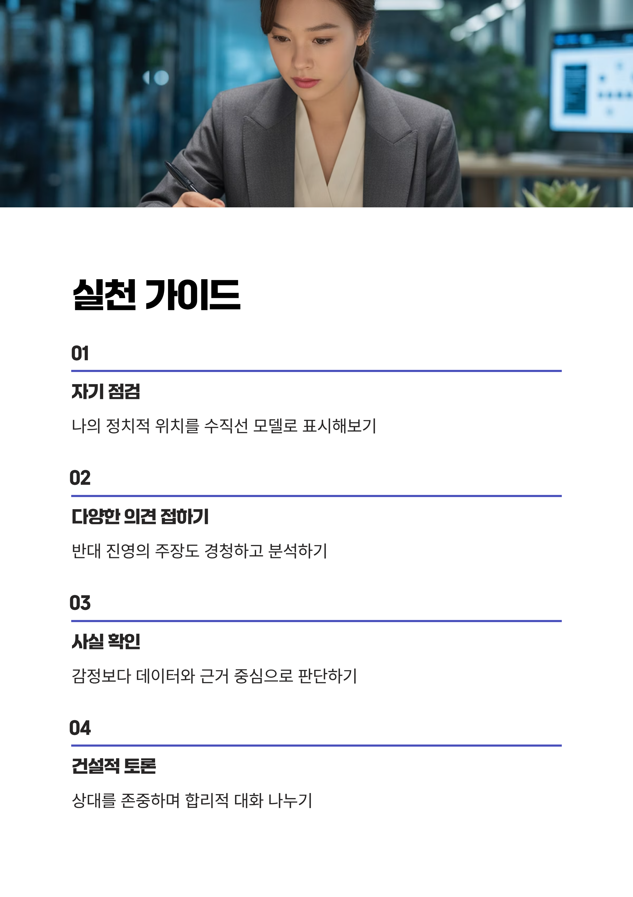 수직선 모델을 통해 정치적 위치를 시각화하면 오해를 줄일 수 있습니다.