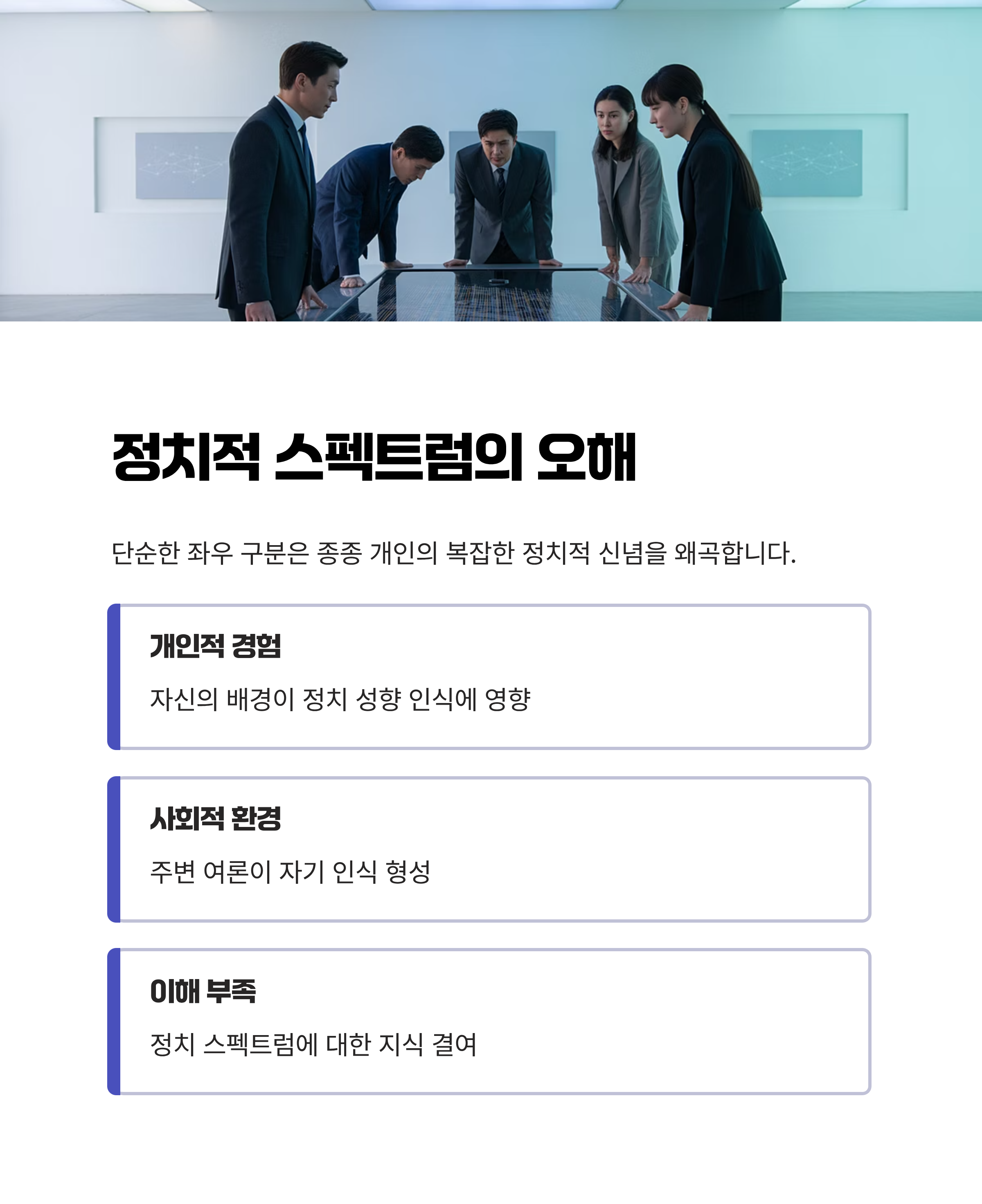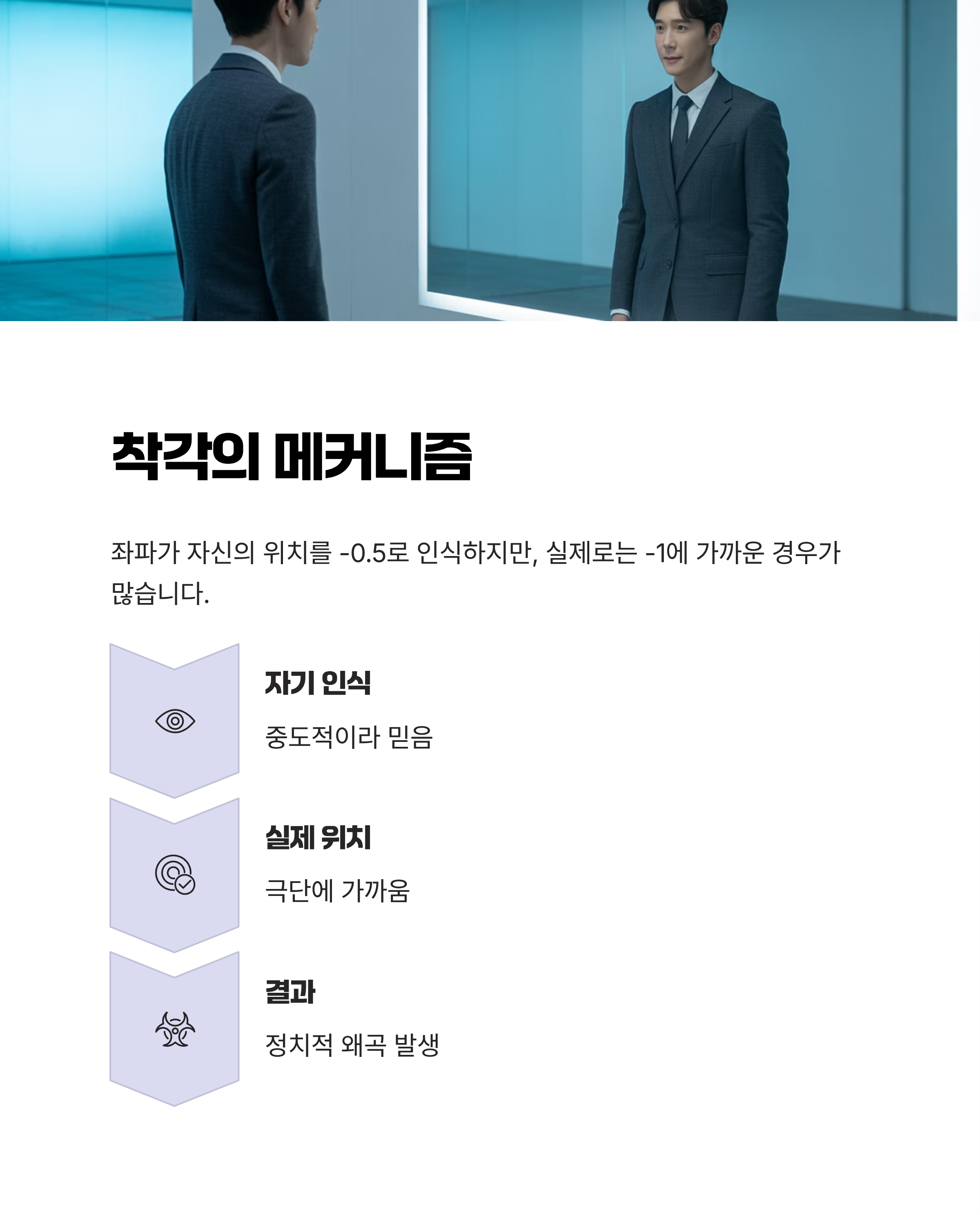 현재 사회에서 좌파와 우파라는 정치적 성향의 개념은 다양한 사건과 담론 속에서 끊임없이 논의되고 있습니다. 그러나 본인이 좌파임에도 불구하고 스스로를 중도라고 인식하거나 주장하는 사례가 종종 관찰됩니다. 이러한 현상을 이해하려면 사회적 환경, 개인적 경험, 그리고 정치적 스펙트럼에 대한 이해 부족 등이 주요 요인으로 분석되어야 합니다. 이 글은 이러한 착각의 메커니즘과 그로 인해 발생하는 논리적 왜곡을 살펴보고 정치적 덫에서 벗어날 수 있는 방안을 제시하고자 합니다.