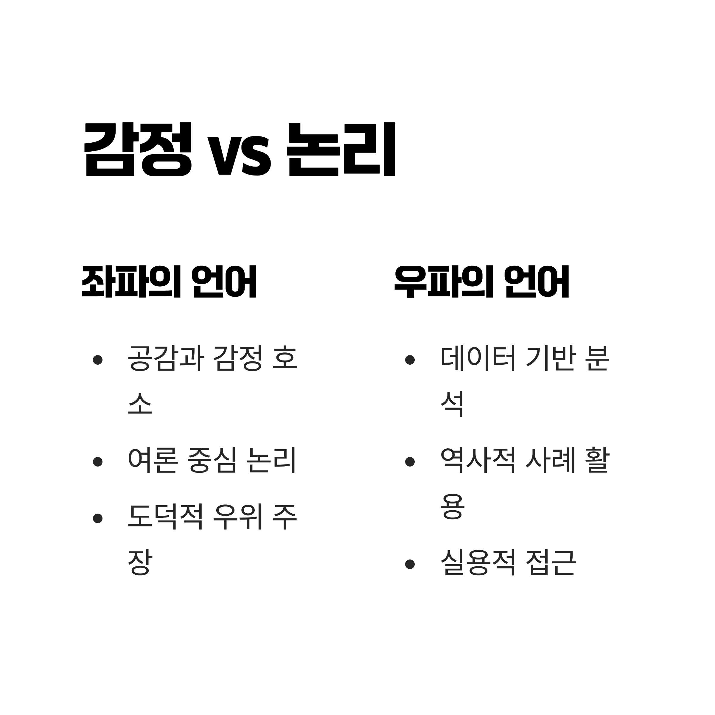 좌파와 우파, 감정과 논리의 대조되는 언어