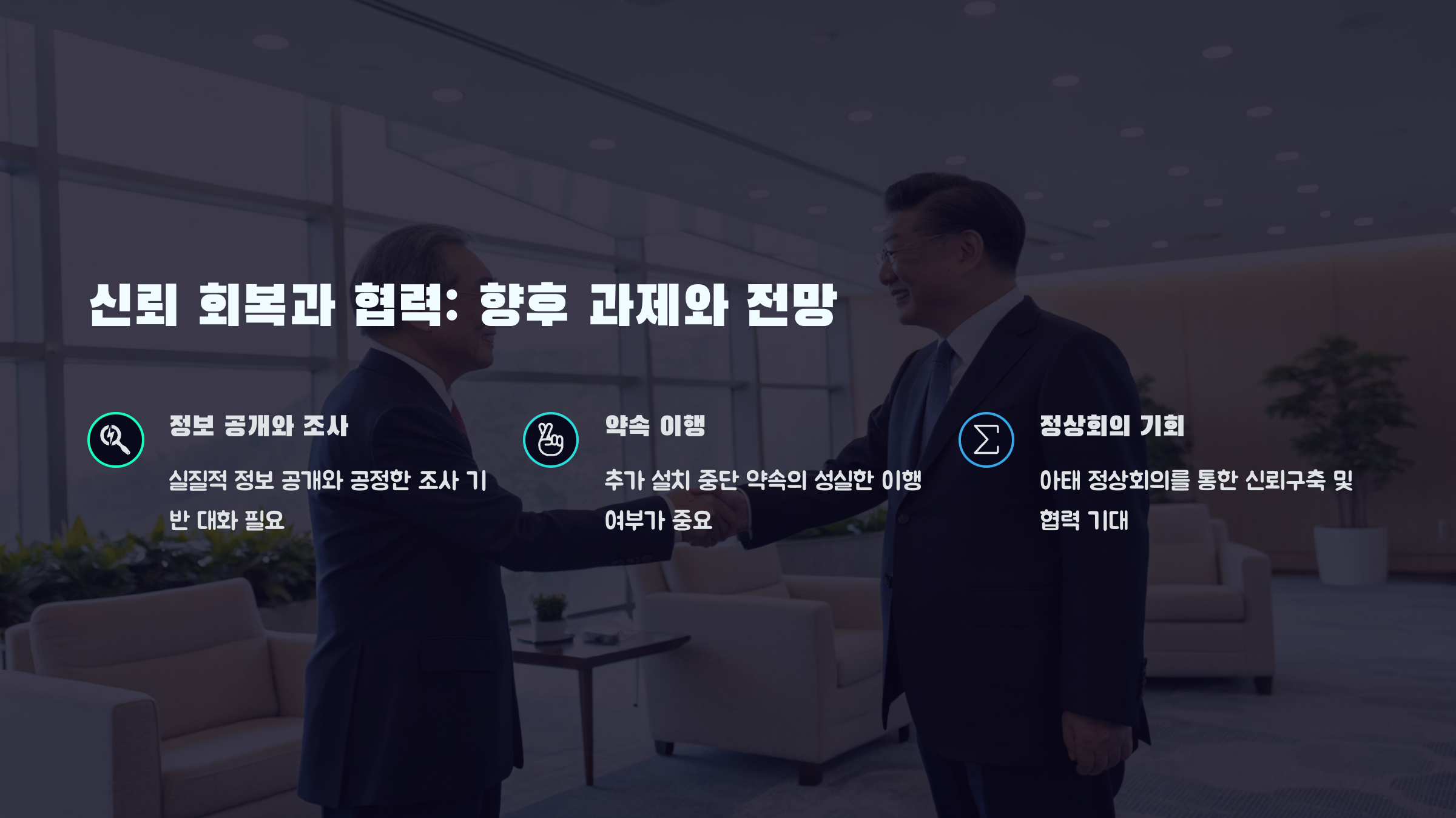 5. 향후 양국 협력 강화 및 신뢰 회복을 위한 대화 기반이 필수적입니다.