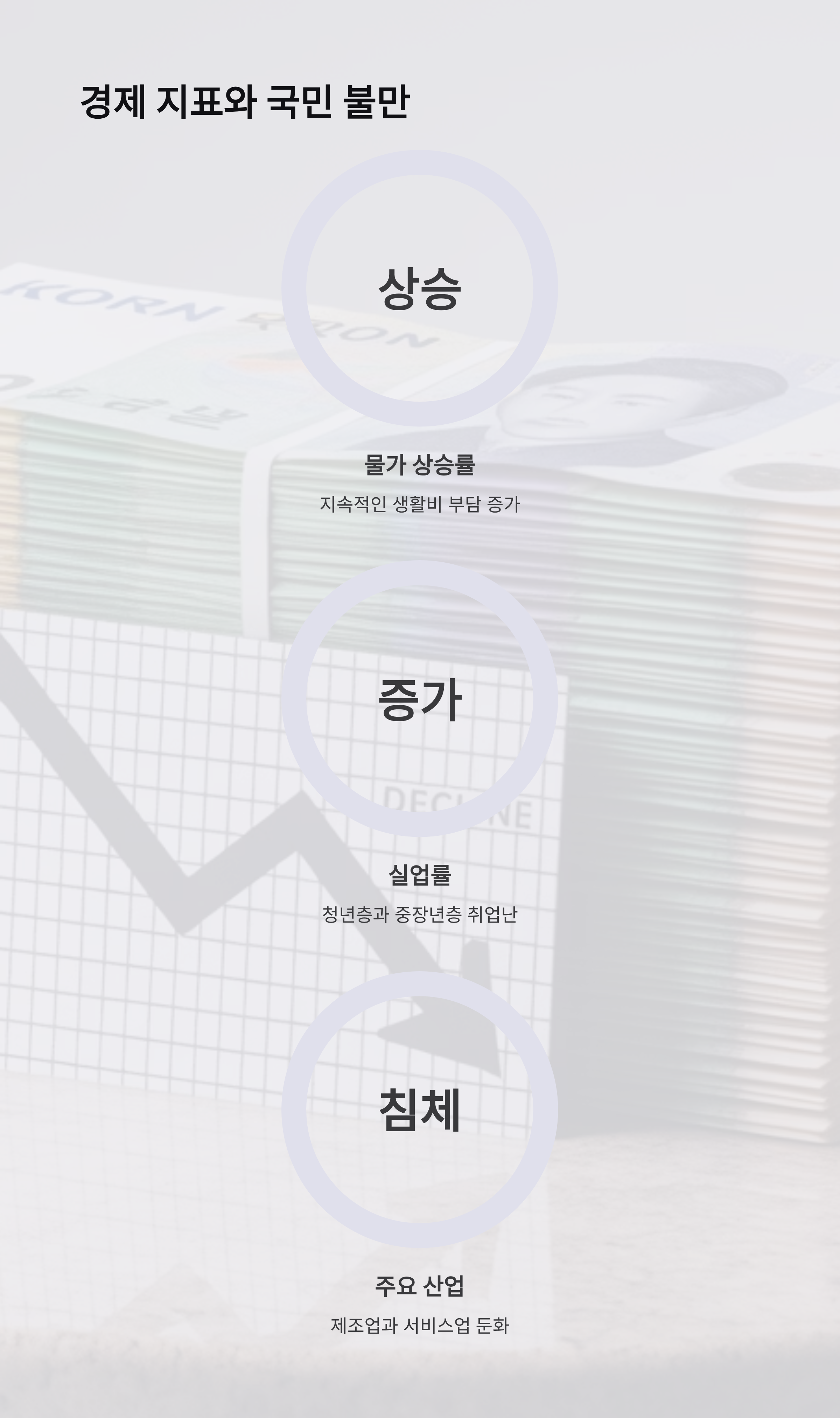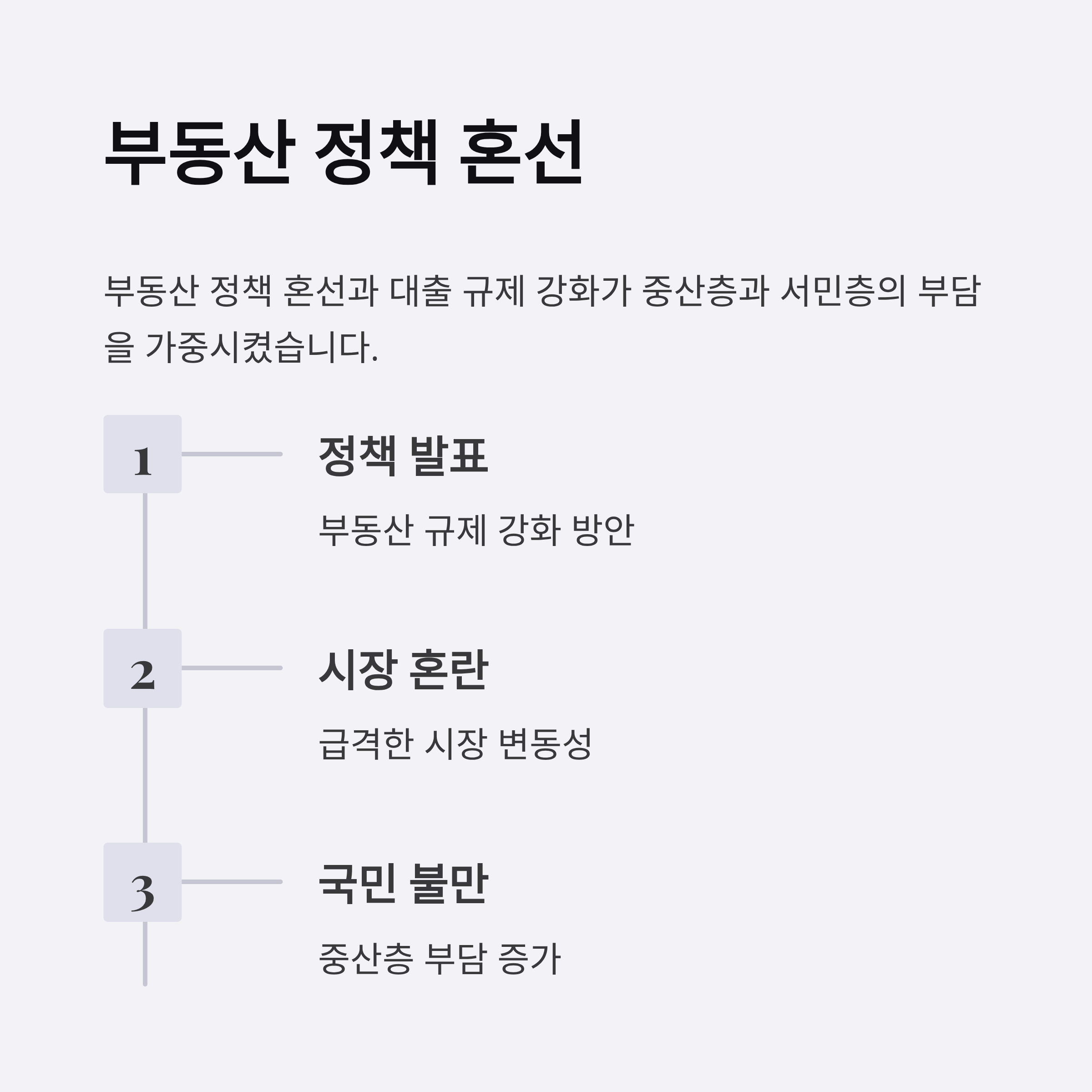 물가 상승, 실업률 증가, 주요 산업의 침체 등 경제 문제는 정부를 향한 불만을 크게 증폭시키고 있다. 특히, 지난 몇 달간 이어진 부동산 정책 혼선과 대출 규제 강화는 중산층과 서민층의 부담을 더욱 가중시켰다. 경제 문제 해결에 대한 국민들의 기대가 좌절되면서 이재명의 정책 신뢰도 또한 하락세에 접어든 것이다. 이러한 경제적 어려움은 단순한 수치 이상의 사회적 불안을 초래하고 있다.