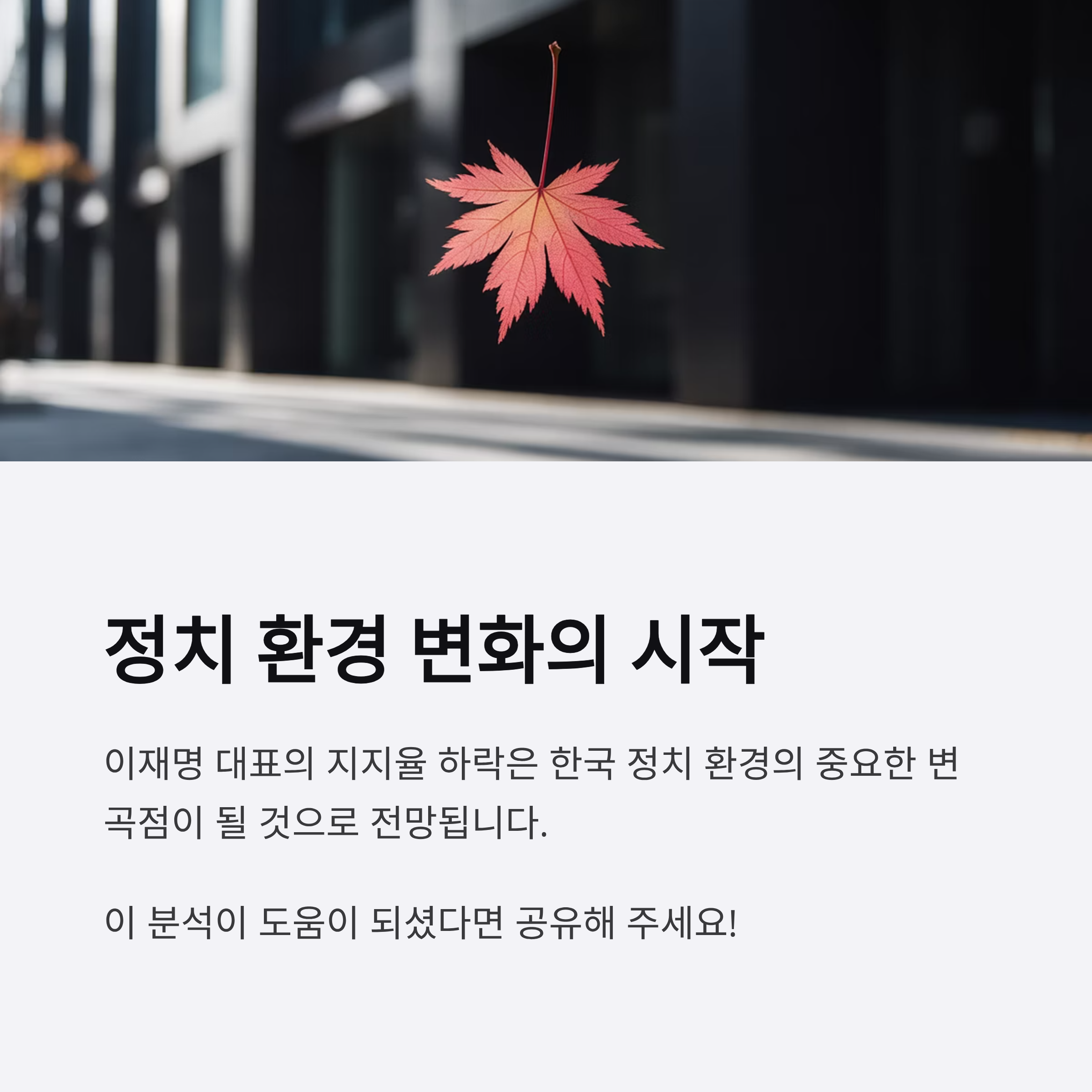 이재명의 지지율 하락은 단기적인 여론 변화가 아닌 구조적인 문제에서 비롯된 것으로 평가할 수 있다. 당 내부 갈등과 정책적 비효율성, 국제적 리더십 부재 등이 복합적으로 작용하며 지지층의 신뢰를 크게 흔들었다. 이러한 상황에서 지지율 회복을 위한 정책 혁신과 내부 갈등 해소는 필수적 과제가 되고 있다. 동시에 외교 및 경제 의제에서 구체적이고 효과적인 해결책을 제시해야 할 것이다.