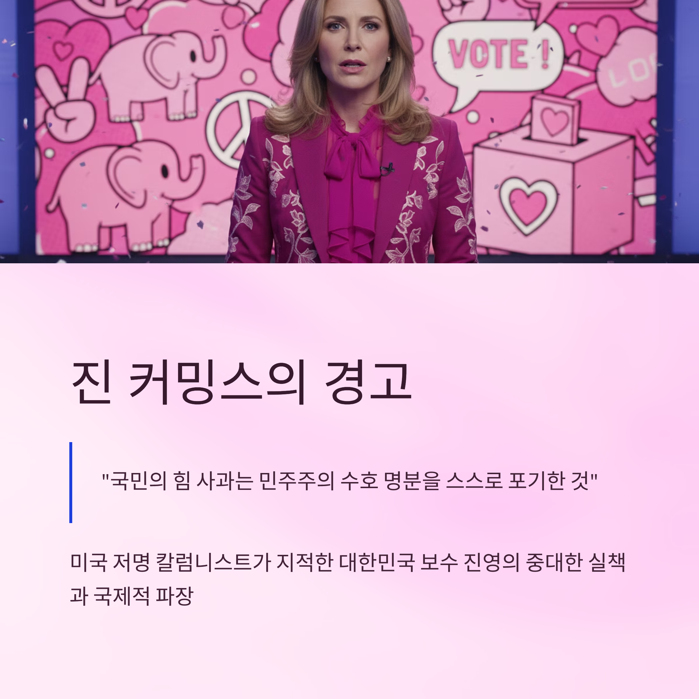 관련 태그: 민주주의위기, 국민의힘사태, 진커밍스칼럼, 한미관계, 보수전략, 자유민주주의