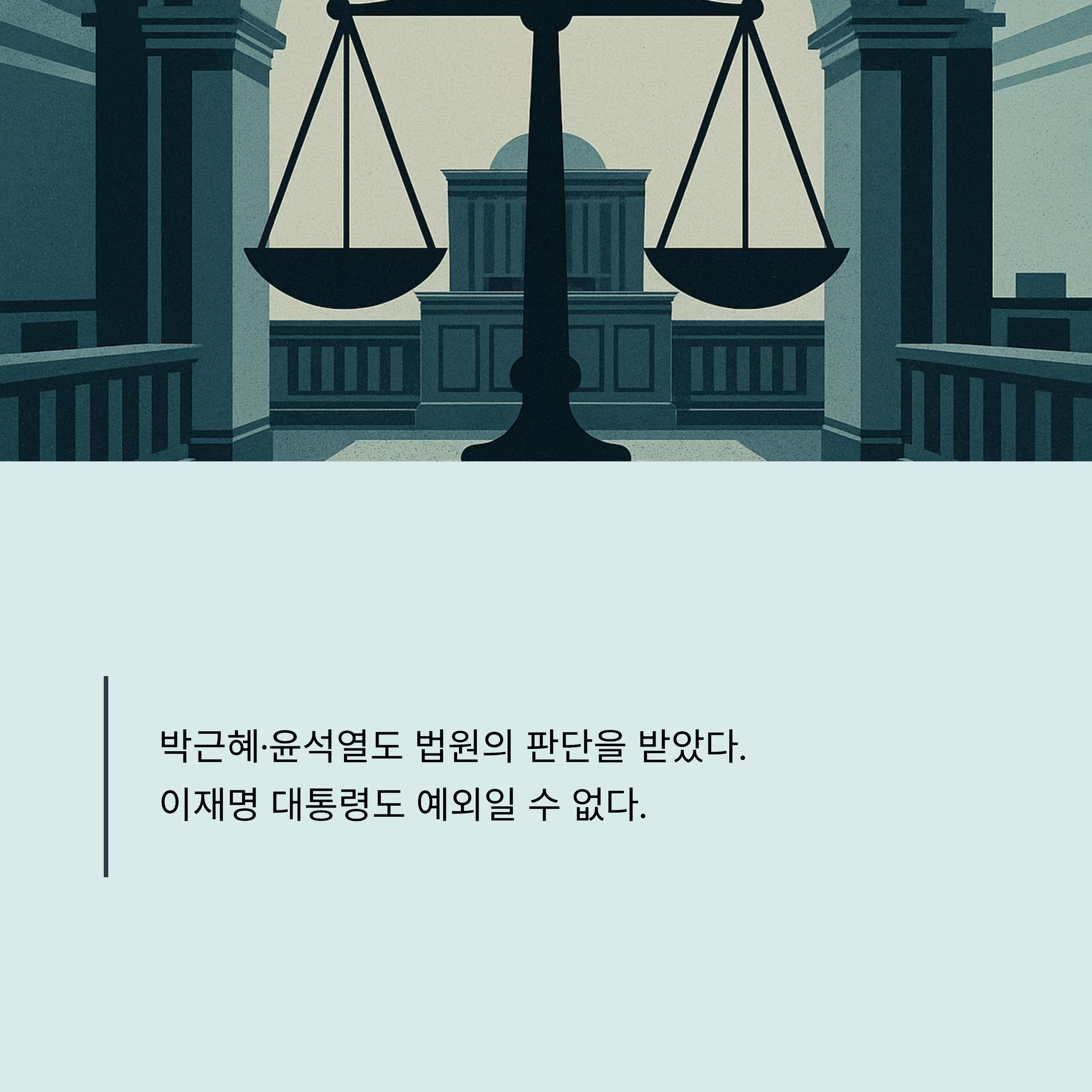 비판의 핵심 근거 중 하나는 '윤석열 전 대통령'과의 비교입니다. 본문 속 화자는 비상계엄 선포 후 내란 혐의로 구속되어 1심에서 무기징역을 선고받고, 북한 무인기 관련 혐의로 징역 30년이 구형된 '윤석열 전 대통령'의 사례를 제시합니다. 그는 "악법도 법"이라며 모든 사법 절차를 수용하고 있는 반면, 이재명 대통령은 자신의 혐의를 피하기 위해 온갖 수단을 동원하고 있다고 주장합니다. 이는 사실관계를 떠나, 전직 대통령들이 정치적 탄압이라는 주장 속에서도 법의 심판대에 섰던 것처럼 이재명 대통령 또한 그래야 한다는 당위성을 강조하는 논리입니다. 이러한 비교는 이재명 대통령에게 더 높은 수준의 도덕성과 투명성을 요구하는 압박으로 작용합니다. 박근혜, 윤석열 전 대통령 모두 지지자들 사이에서는 '정치적 탄핵' 또는 '조작된 수사'라는 인식이 존재했지만, 그들은 결국 법원의 판단을 받았습니다. 따라서 이 대통령이 계속해서 법정 밖에서 결백을 주장하는 것은 전직 대통령들과의 형평성에 어긋나며, 법 위에 군림하려는 태도로 비춰질 수 있다는 것입니다. 이는 국민 주권과 공직자의 책임성을 명시한 헌법 정신에도 위배된다는 지적입니다.