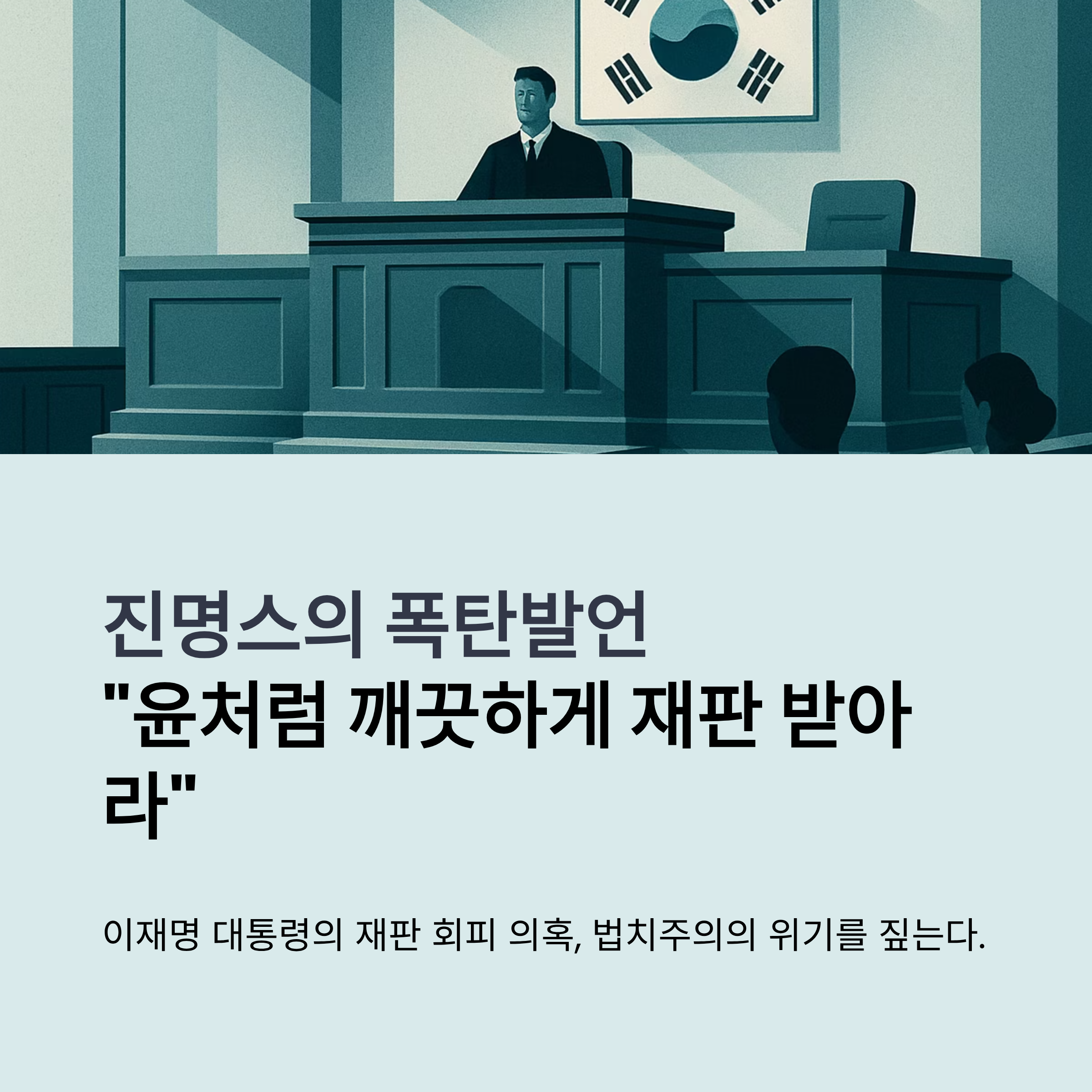 이재명 대통령의 재판 관련 논란은 한 개인의 법적 문제를 넘어 대한민국 법치주의의 근간을 뒤흔드는 중대한 사안으로 비화하고 있습니다. 대통령이 국정 최고 책임자로서의 역할을 수행하는 대신, 자신의 사법 리스크를 방어하기 위해 국가 시스템을 동원하고 있다는 비판은 결코 가볍게 넘길 수 없습니다. SNS를 통해 여론을 선동하고, 수사 검사를 탄핵하려 하며, 헌법상 불소추 특권을 방패 삼아 재판을 지연시키는 일련의 과정은 법 앞의 평등이라는 대원칙을 정면으로 위배하는 행위입니다. '진명스'가 "윤석열 전 대통령처럼 깨끗하게 재판을 받으라"고 촉구한 것은, 전직 대통령들이 겪었던 사법적 과정을 상기시키며 이 대통령에게도 동일한 잣대를 적용해야 한다는 국민적 요구를 대변합니다. 진정한 결백은 법정 밖에서의 외침이 아니라, 법정 안에서 증거와 법리로써 증명될 때 비로소 인정받을 수 있습니다. 대통령이 사법 절차에 성실히 임하는 모습을 보이는 것은 자신을 위해서뿐만 아니라, 무너져가는 사법부에 대한 국민의 신뢰를 회복하고 국가의 기강을 바로 세우기 위한 최소한의 책무입니다. 이제 이재명 대통령은 선택의 기로에 섰습니다. 계속해서 정치적 수단을 동원해 사법 절차를 회피하며 논란을 키울 것인가, 아니면 지금이라도 모든 의혹을 법정에서 투명하게 해소하고 판결에 승복하는 모습을 보일 것인가. 그의 선택에 대한민국의 민주주의와 법치주의의 미래가 달려있습니다. 국민은 더 이상 정치적 선동이 아닌, 법과 원칙에 따른 공정한 심판을 원하고 있음을 명심해야 할 것입니다.