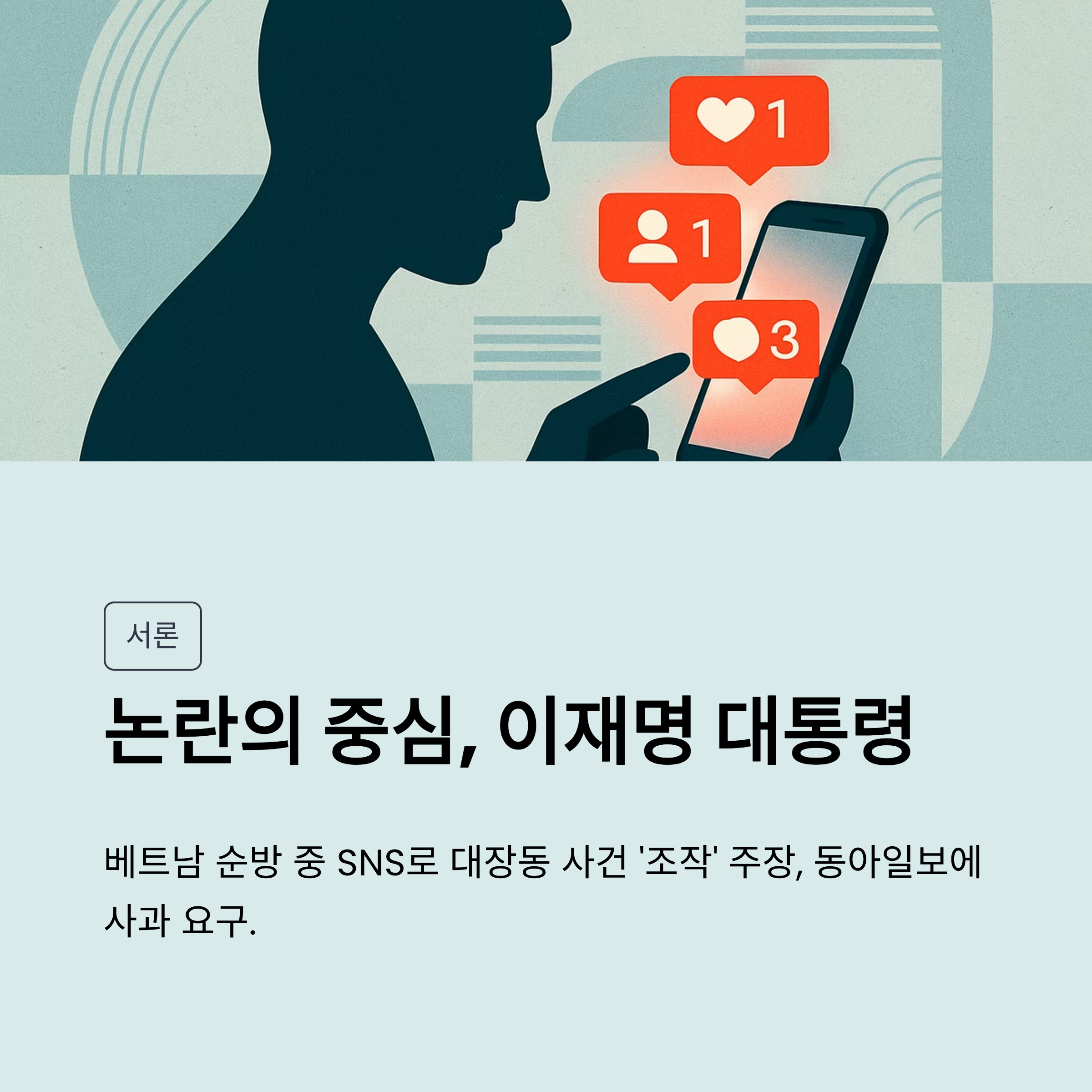 이재명 대통령이 국빈 자격으로 베트남을 방문 중인 가운데, 자신의 '대장동 사건' 관련 의혹이 조작되었다는 내용의 SNS 글을 게시하며 논란의 중심에 섰습니다. 그는 과거 관련 보도로 상을 받은 동아일보에 수상 취소와 사과를 요구하며 적극적인 여론전에 나섰습니다. 이에 대해 평론가 '진명스'는 "윤석열 전 대통령처럼 깨끗하게 재판을 받으라"고 일침을 가하며, 대통령의 사법적 책임과 투명성을 촉구했습니다. 본 글에서는 이재명 대통령의 재판 관련 행보를 둘러싼 비판과 그 근거를 심층적으로 분석하고, 이것이 우리 사회의 법치주의에 던지는 의미를 고찰하고자 합니다.