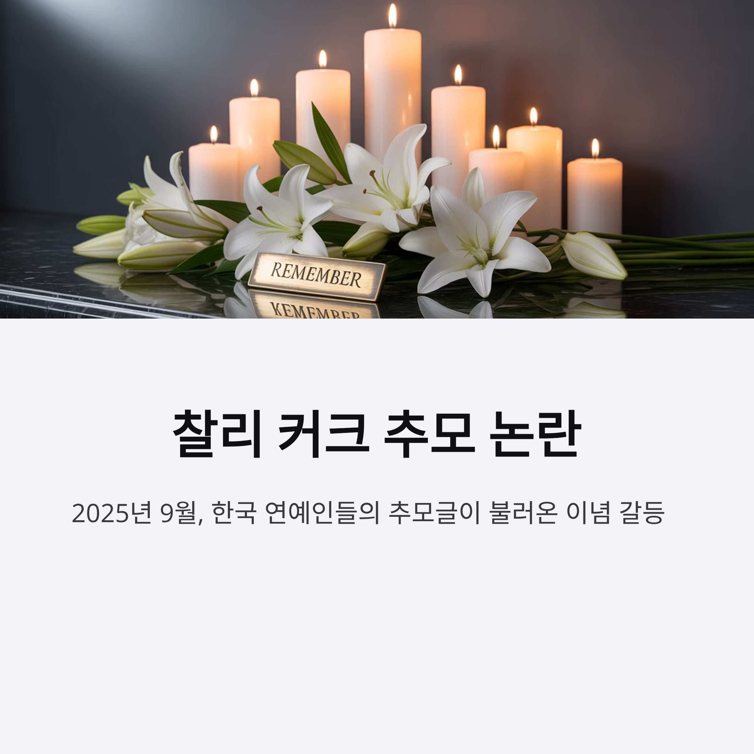2025년 9월, 미국에서는 찰리 커크의 사망을 애도하는 물결이 일고 있지만 대한민국에서의 반응은 다소 논란적인 양상을 보이고 있습니다. 특히, 몇몇 유명 연예인들이 찰리 커크에 대한 추모 글을 개인 SNS에 올렸다가 삭제하거나, 심지어 비판적인 여론을 맞닥뜨린 적도 있습니다. 이 갈등은 단순히 한 개인을 둘러싼 의견 충돌을 넘어 우리나라의 문화와 이념적 분열의 단면을 보여주는 사례로 분석되고 있습니다.