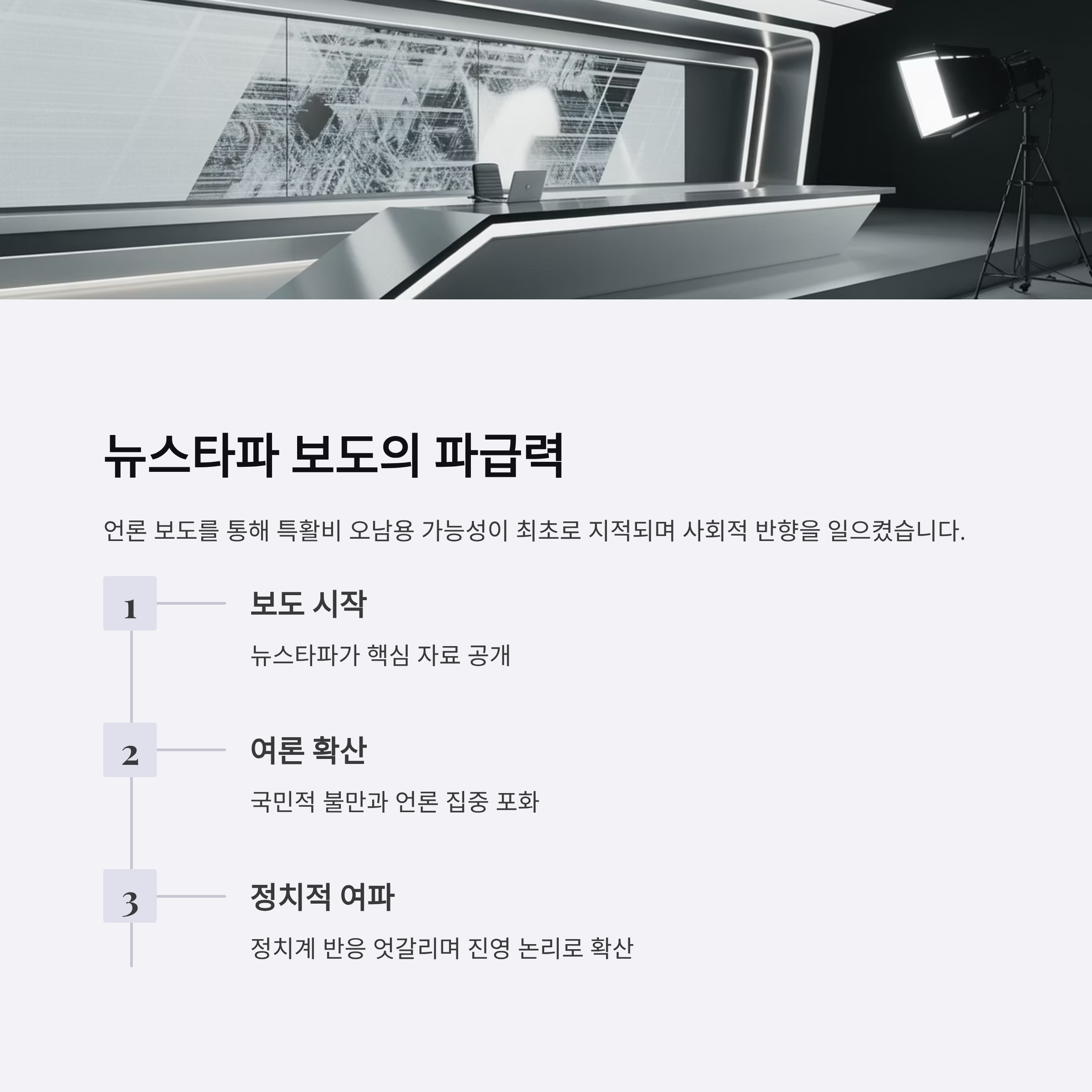 - 뉴스타파의 보도는 특활비의 오남용 가능성을 최초 지적하며 사회적 반향을 일으켰습니다.
