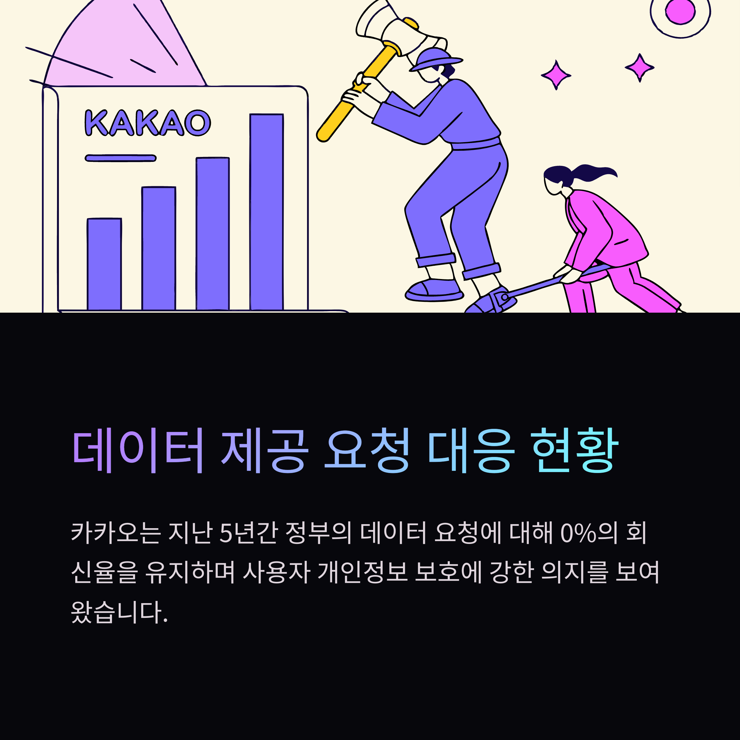 정부의 카카오톡 데이터 제공 요청에 대한 응답률이 낮아, 개인정보 보호 기조를 유지하고 있습니다.