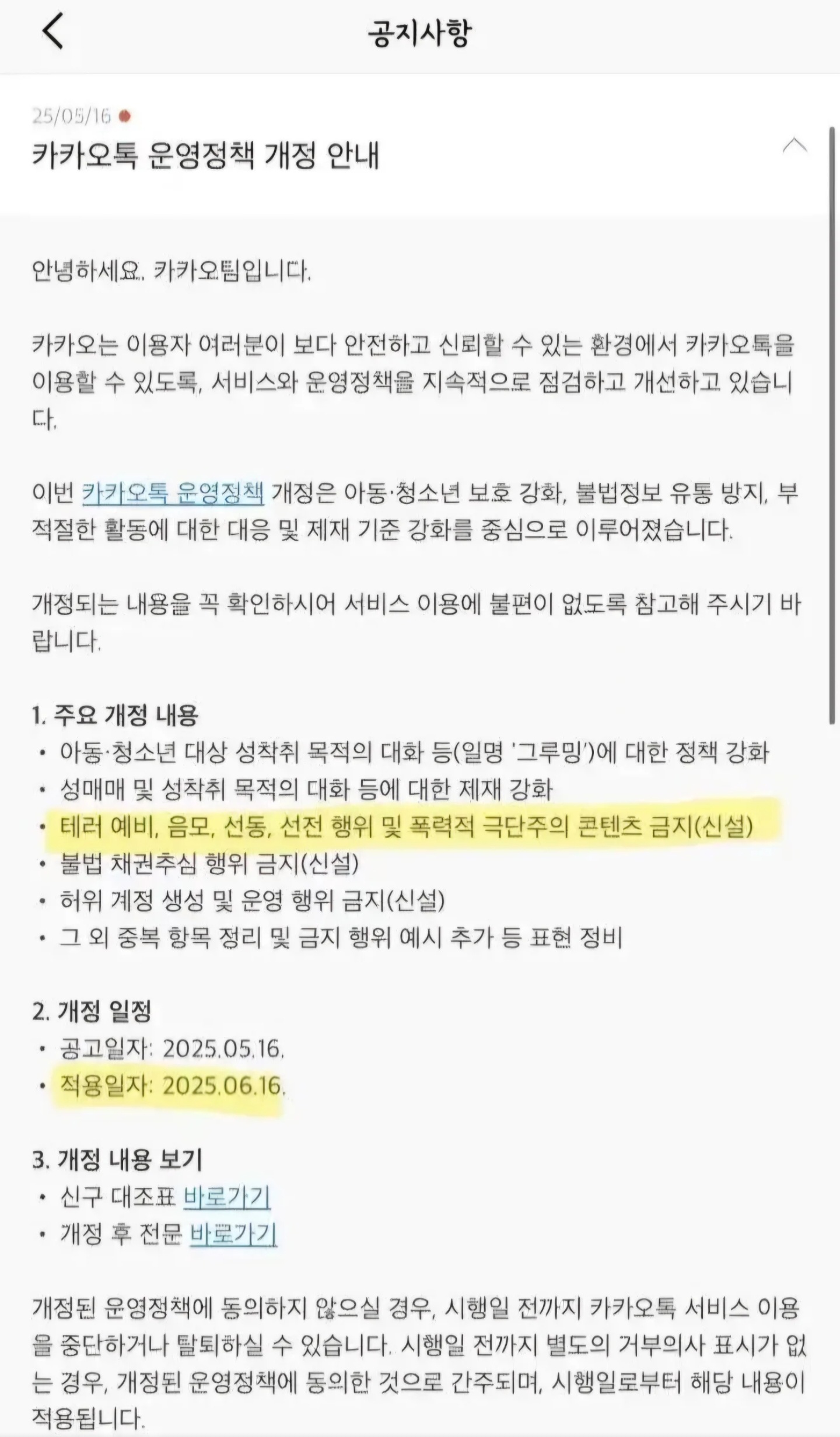 - 카카오톡 운영규정 변경의 배경 및 내용