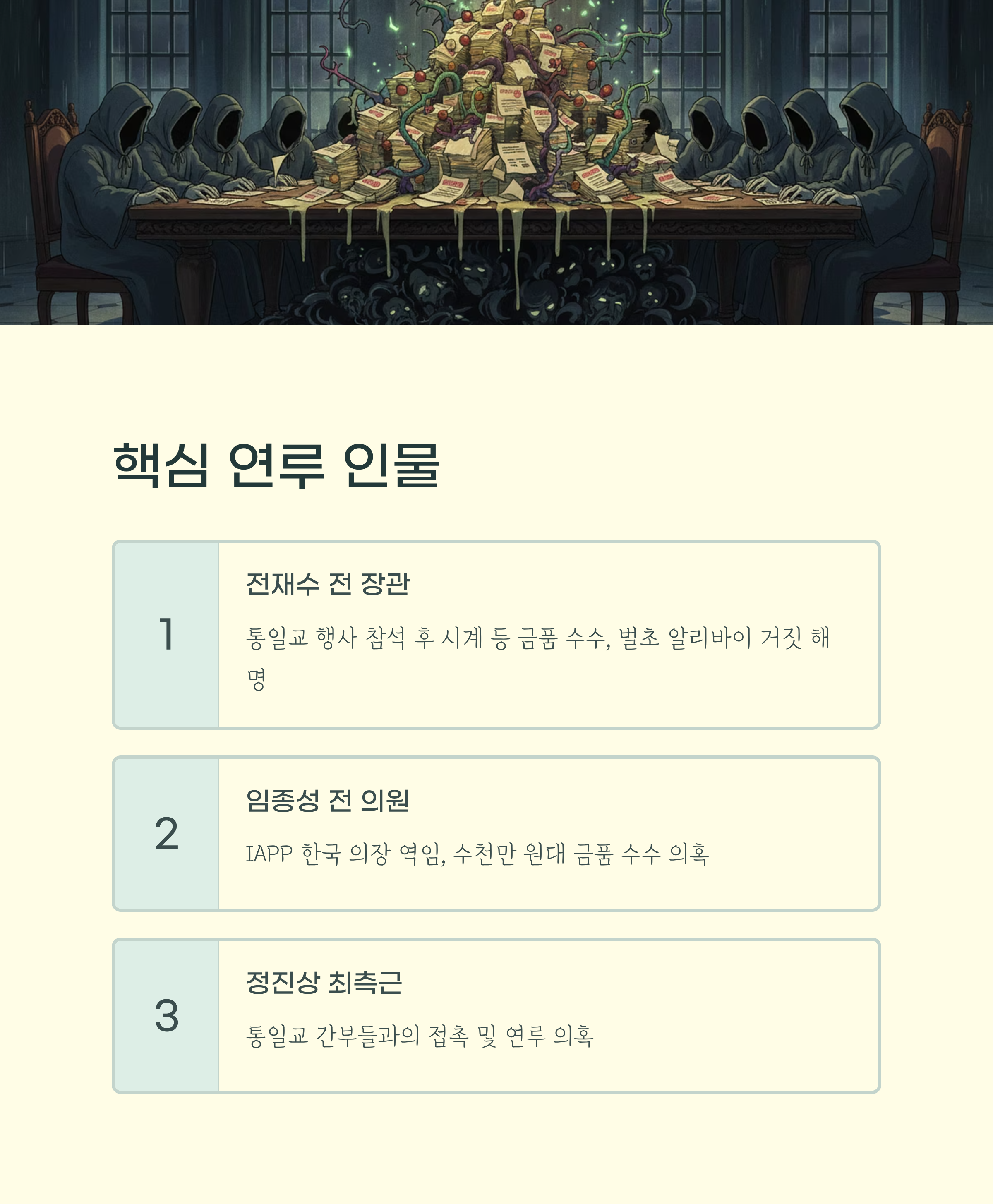 | 임종성 | 전 민주당 의원 | 통일교 산하 IAPP 한국 의장 역임, 수천만 원대 금품 수수 의혹 |