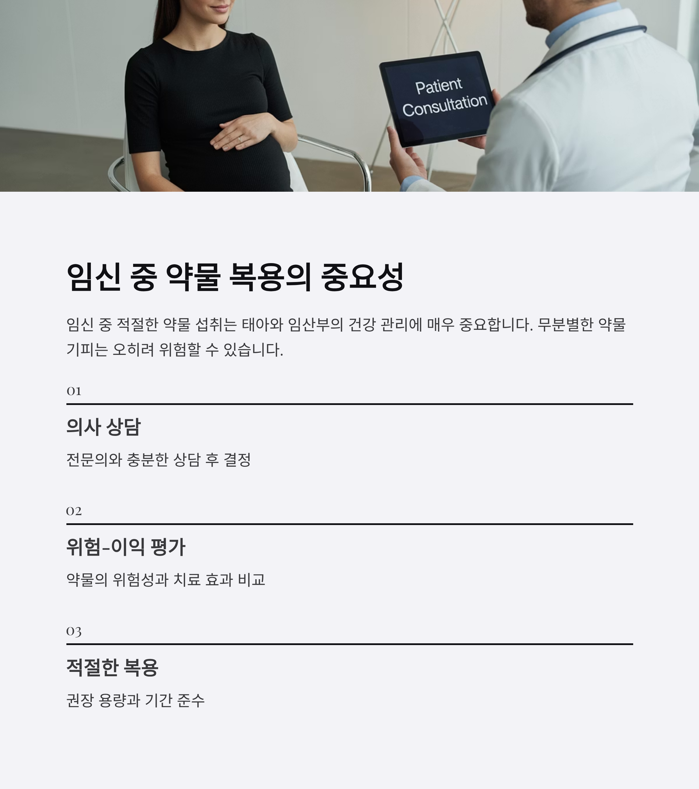 - 임신 중 적절한 약물 섭취는 태아와 임산부의 건강 관리에 매우 중요하다는 입장이 지배적입니다.
