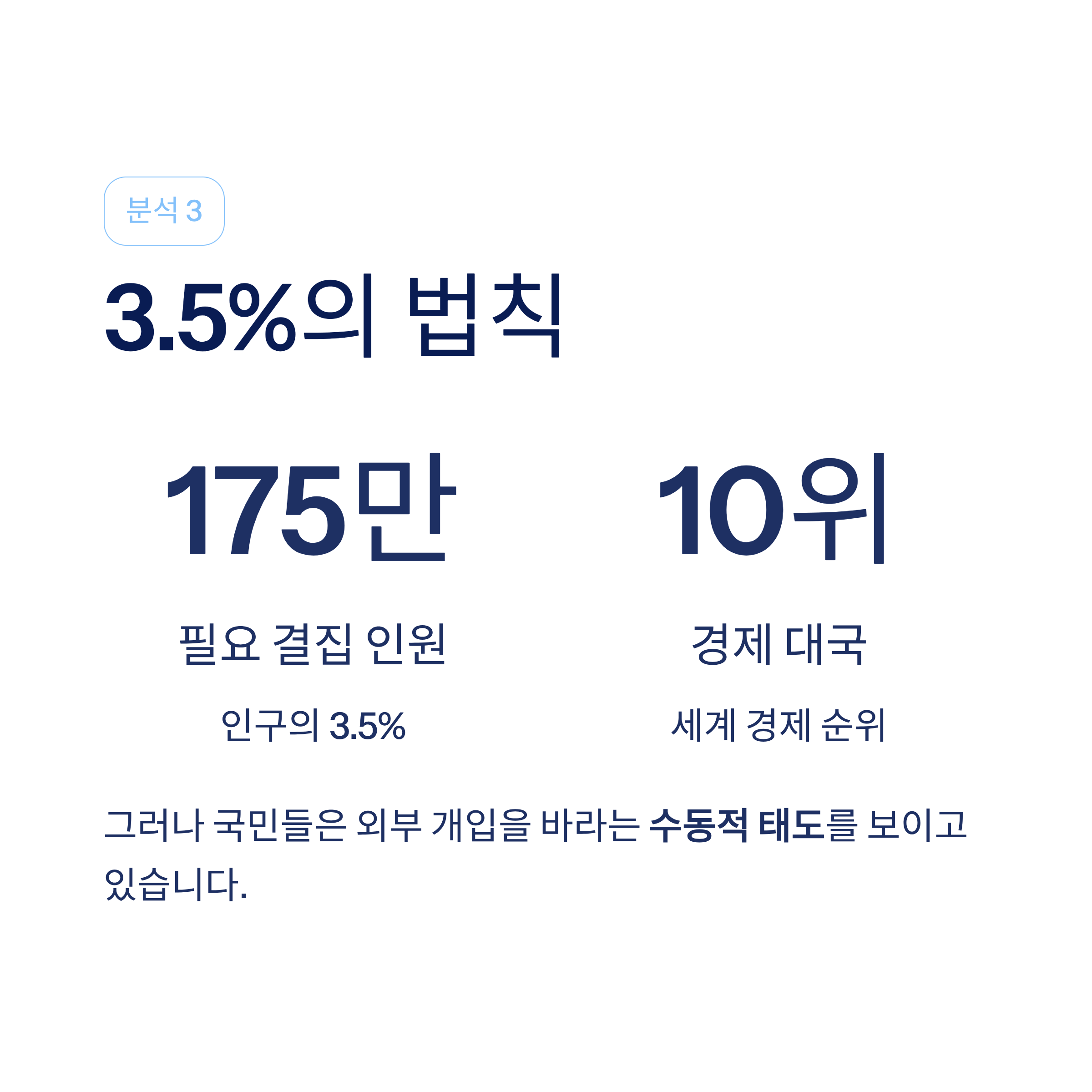 정권 교체를 위한 3.5%의 법칙이 재조명되고 있으나, 내부 동력의 한계로 인해 강력한 외부 개입을 갈망하는 목소리가 커지고 있습니다.