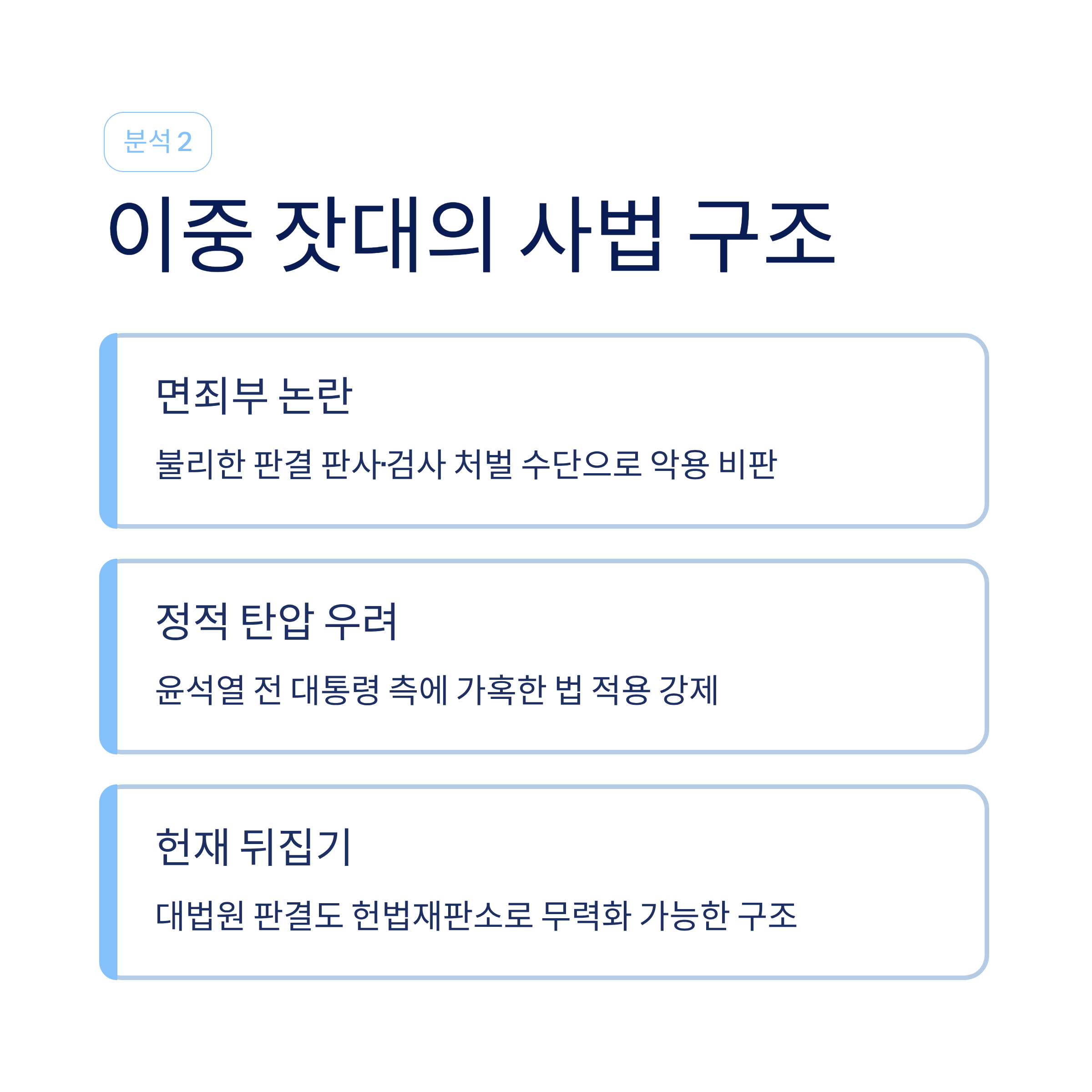 특히 '법 왜곡죄' 도입으로 이재명 대통령은 면죄부를, 윤석열 전 대통령은 정치적 탄압을 받는 사법 구조에 대한 불신이 팽배합니다.
