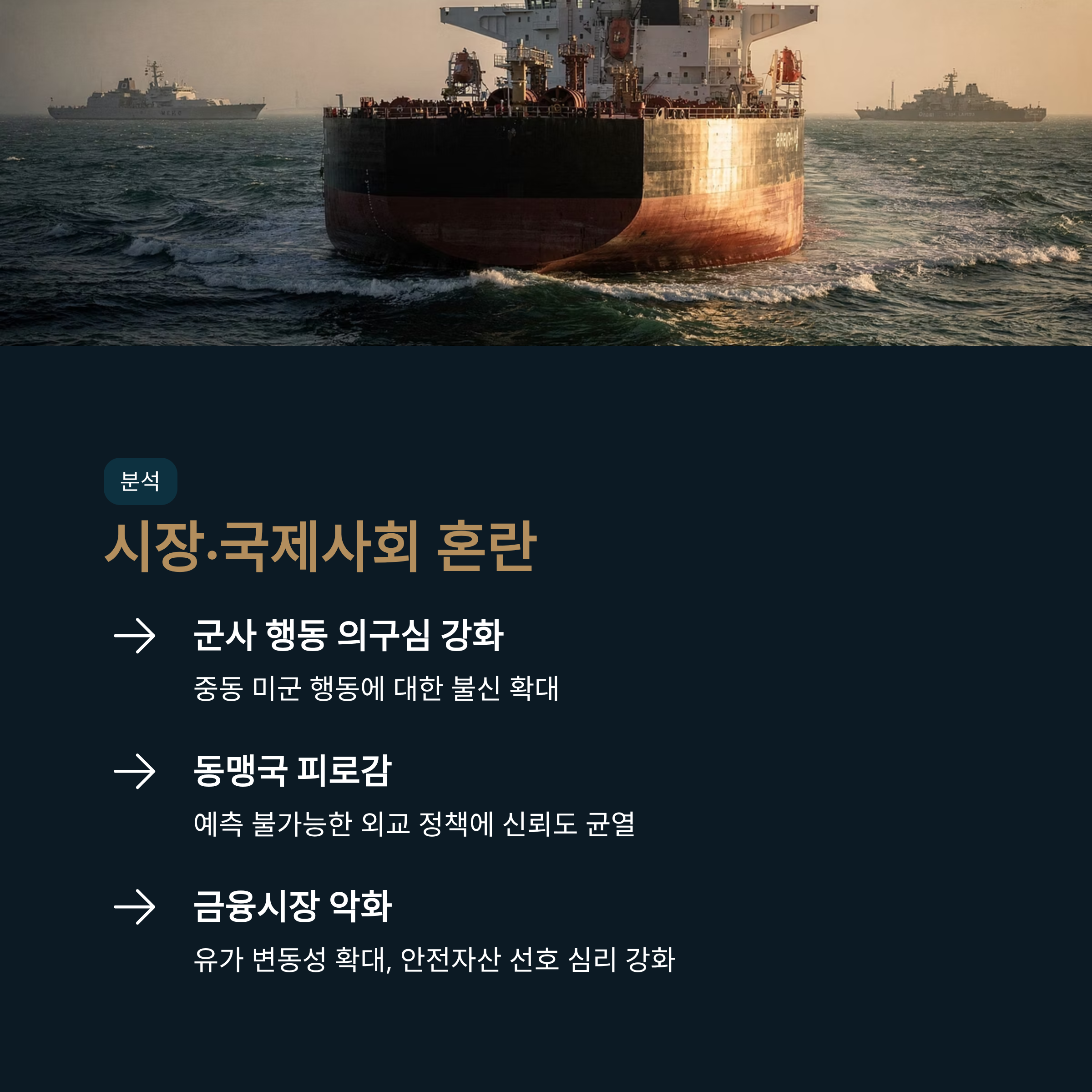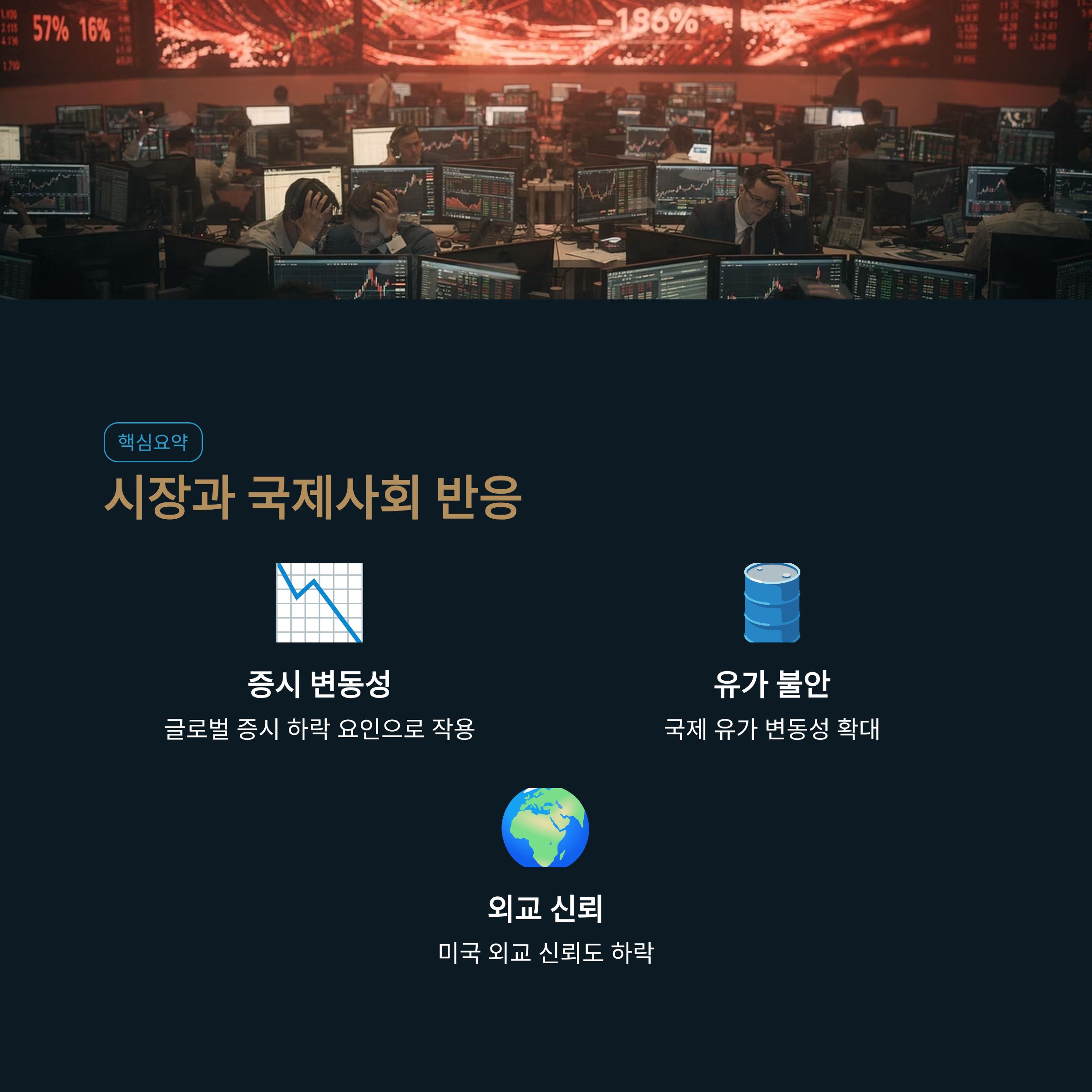| 시장 반응 | 불안정성 증가로 증시 및 국제 유가 변동성 확대 |