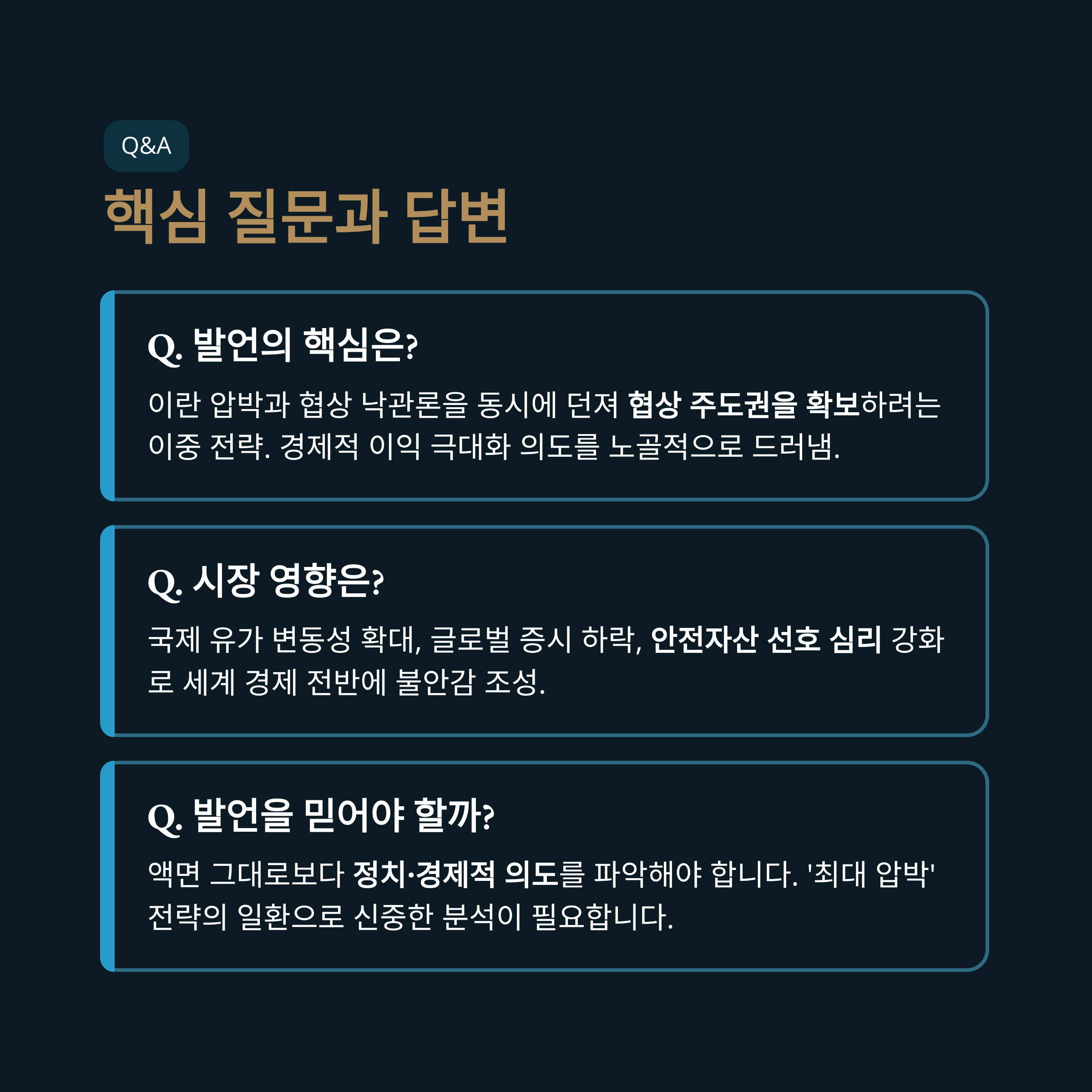 | Q. 트럼프의 이란 발언의 핵심은 무엇인가요? |