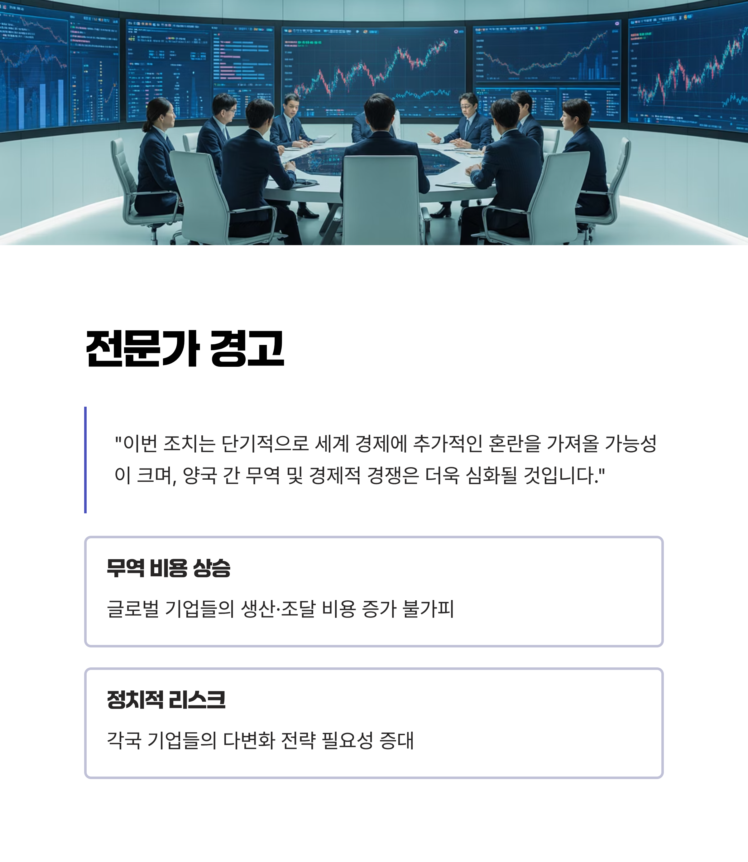 또한, 각국의 기업들은 점점 더 정치적 리스크를 고려한 다변화된 생산·조달 전략을 채택해야 하며, 이는 기업의 비용 증가를 의미합니다. 글로벌 무역 체계가 개방적 자유주의 구조에서 벗어나, 각국의 국익 중심 정책으로 이동하는 경향이 강화될 가능성도 있습니다.