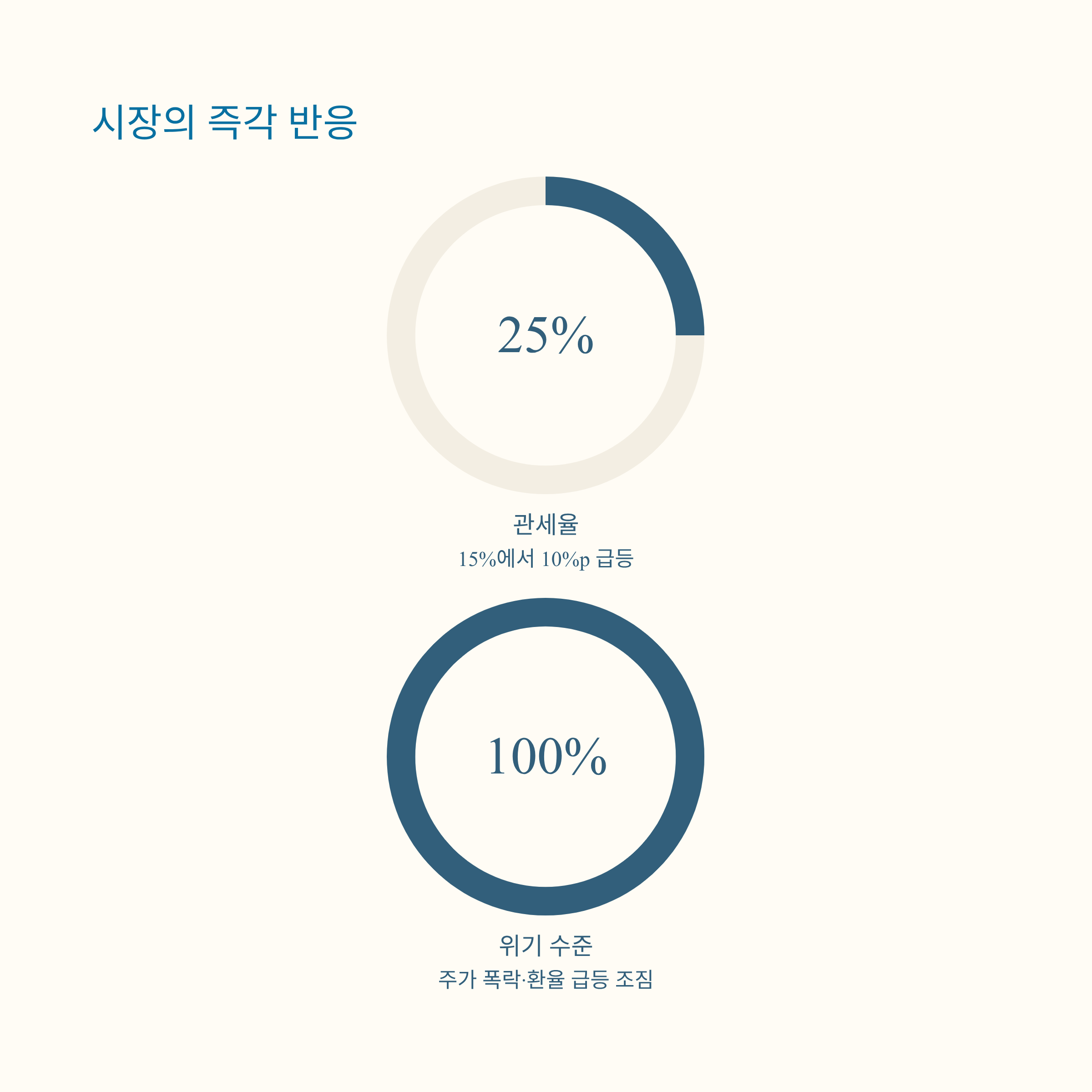 | 경제 파급력 | 자동차·의약품 수출 타격, 고용 악화, 투자 위축, 주가 하락 등 연쇄적 경제 위기 우려. |