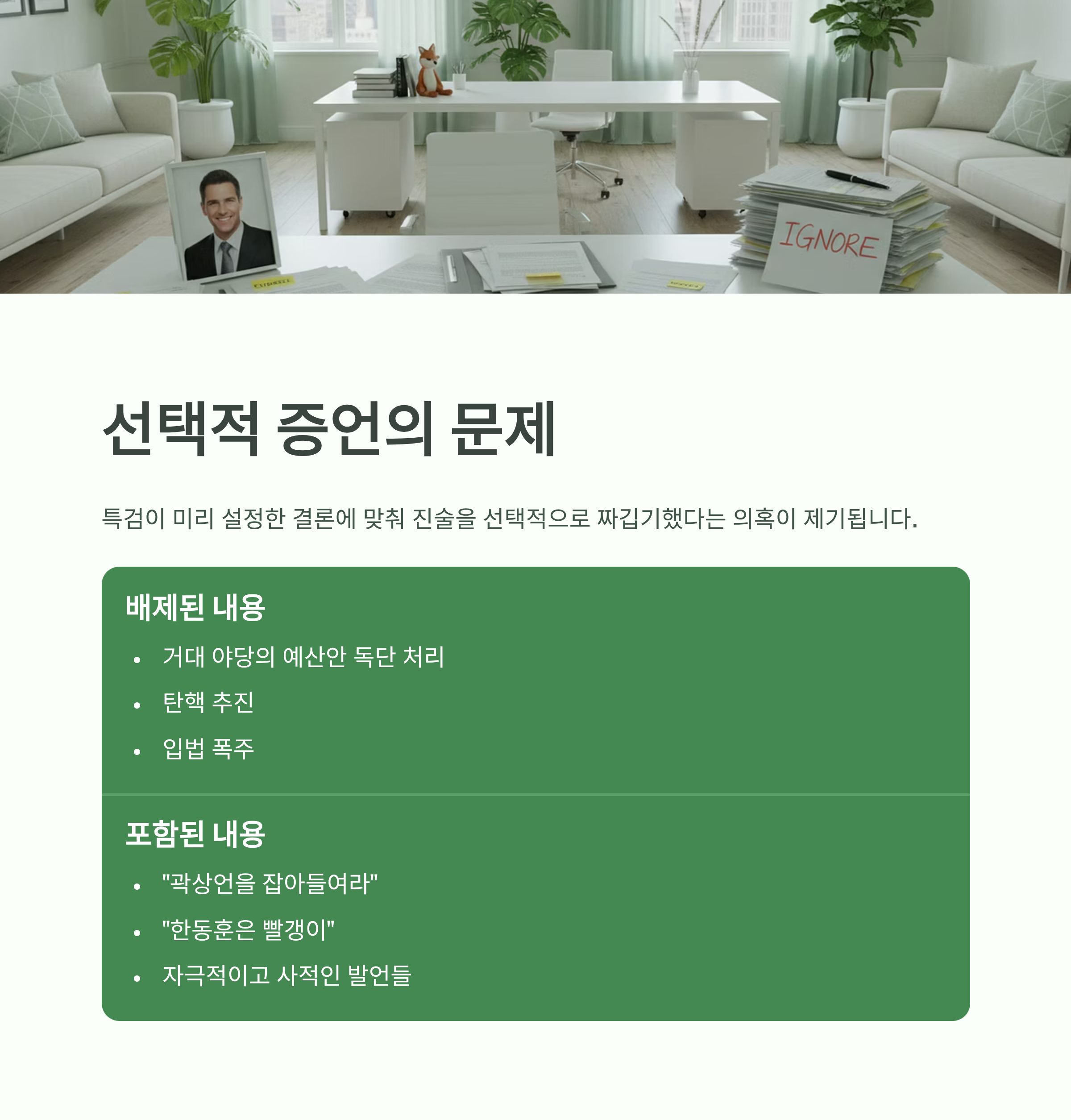 - 분석 2: 선택적 증언 채택과 플리바게닝 의혹