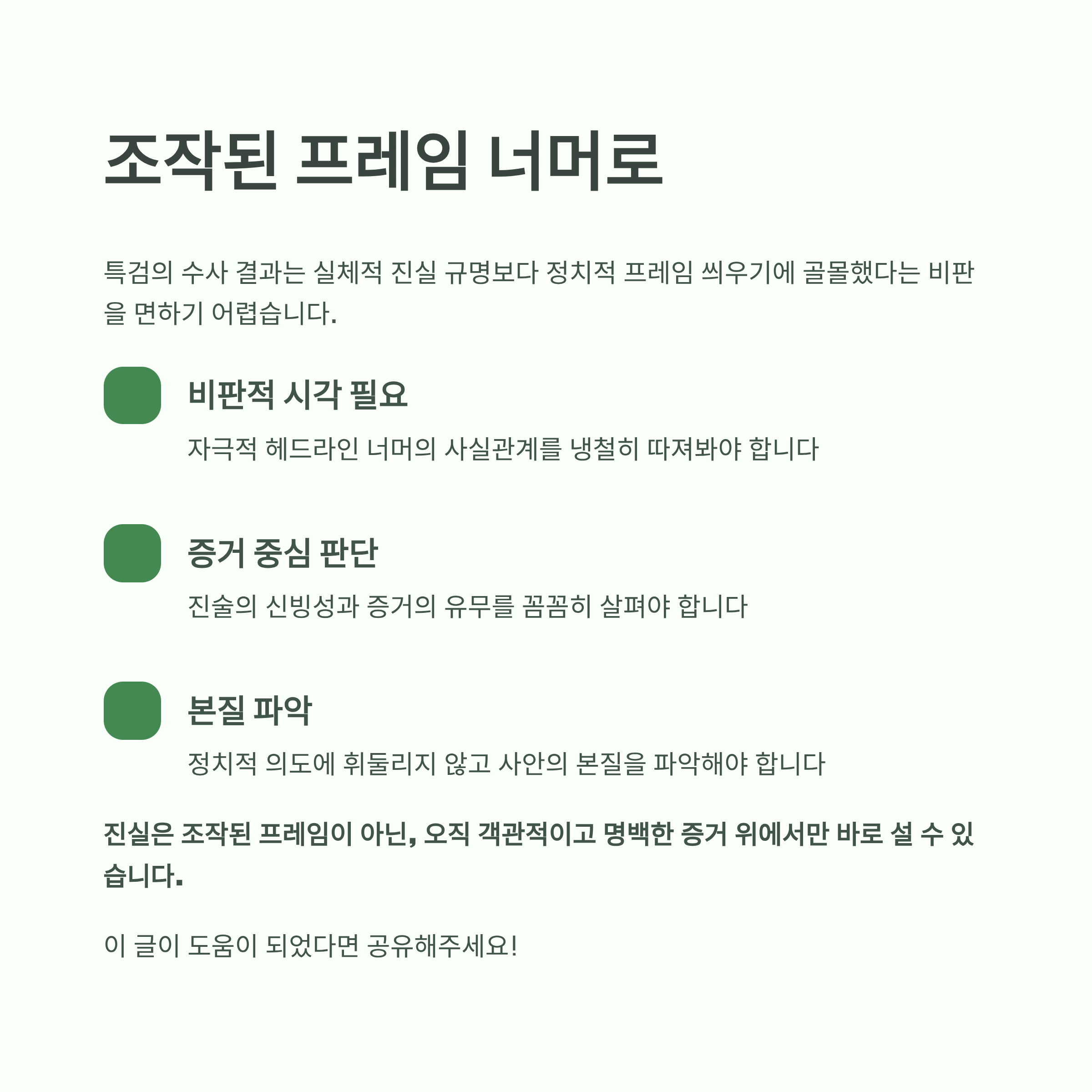진실은 조작된 프레임이 아닌, 오직 객관적이고 명백한 증거 위에서만 바로 설 수 있습니다.