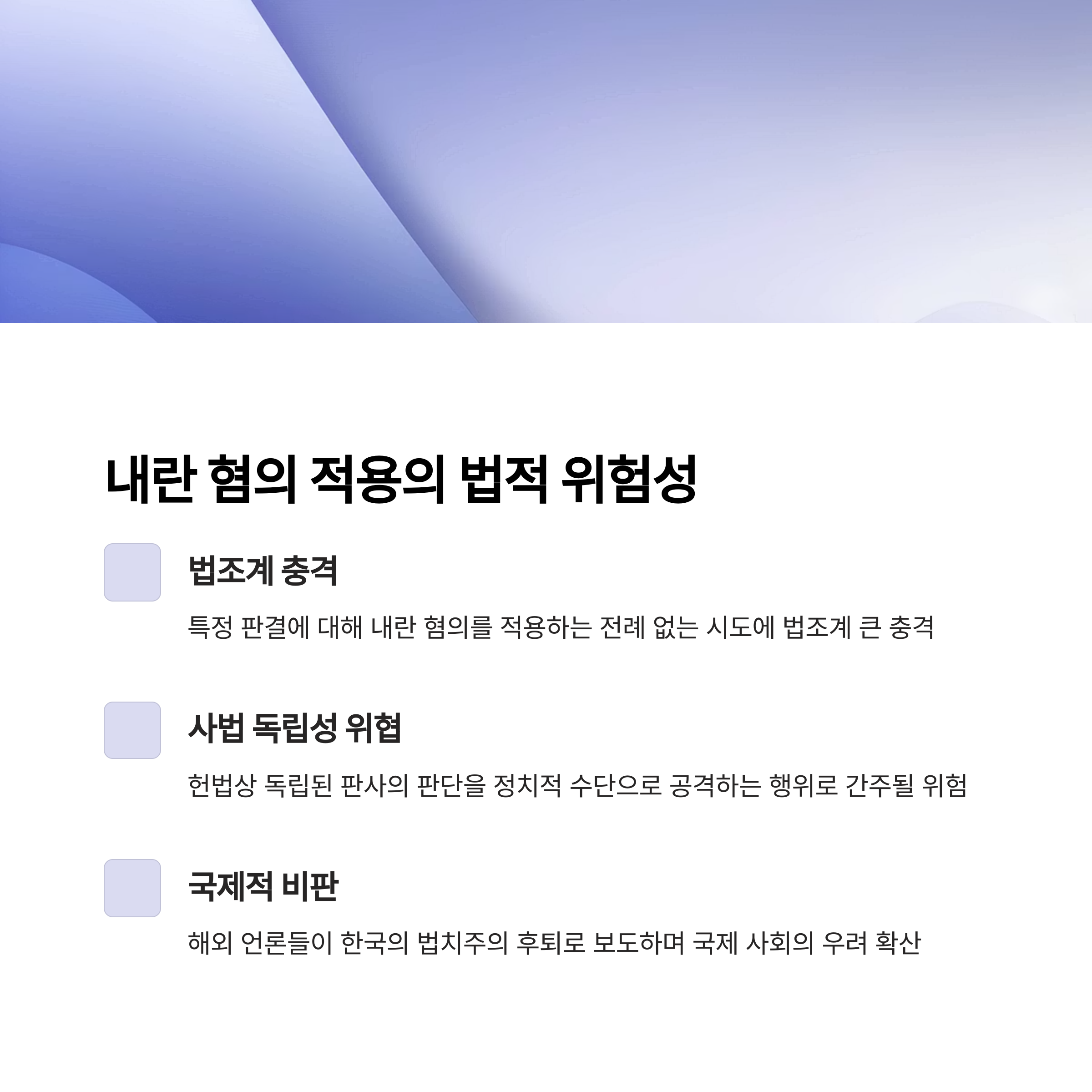 특히, '내란 혐의'를 특정 판결에 적용한 사례는 법적 혼란과 국제적 비판을 초래할 가능성이 농후합니다.