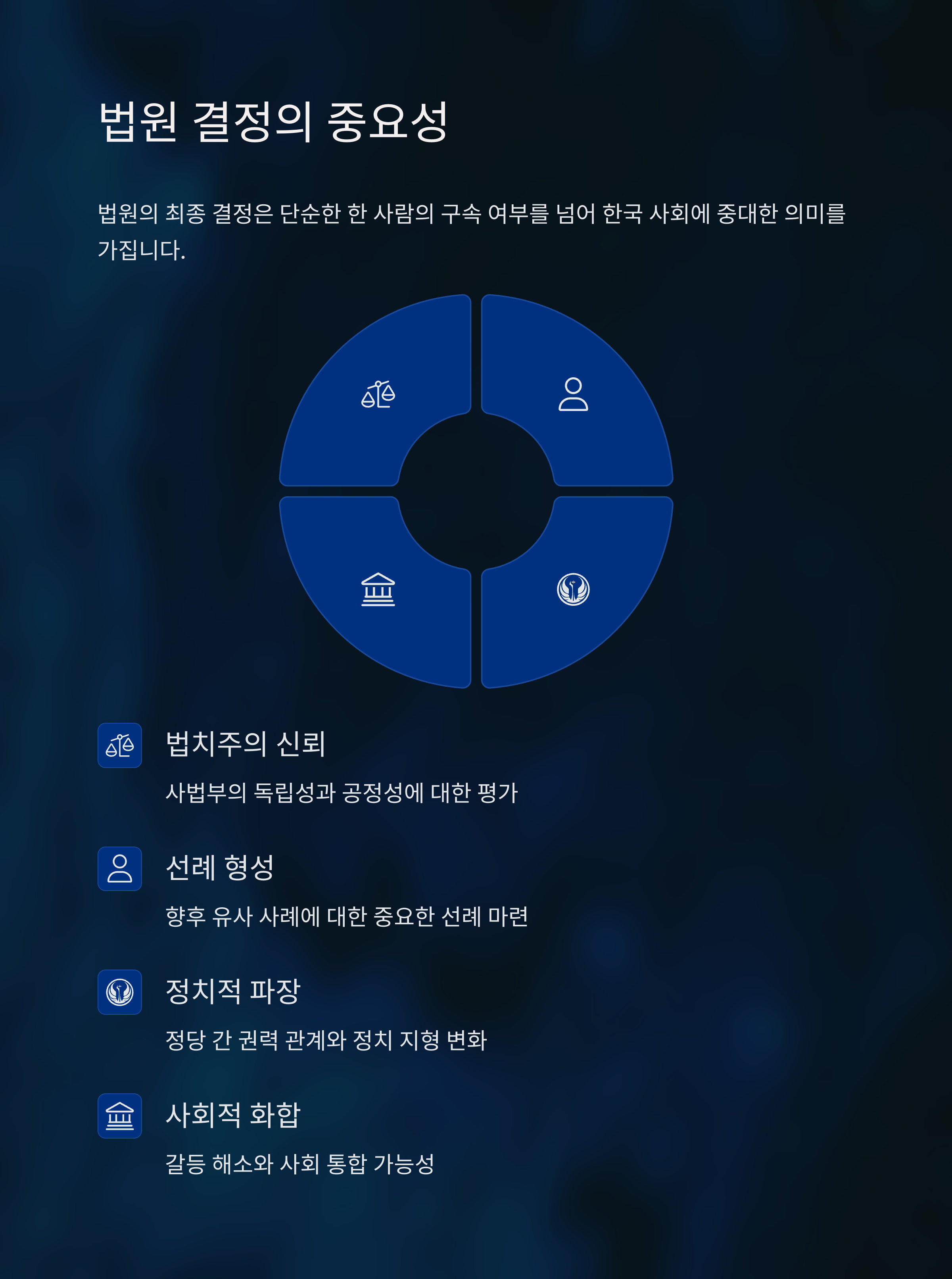 장기적으로 이번 사건은 국가 법치주의의 미래를 결정짓는 중요한 축이 될 가능성이 큽니다. 법적 판단이 공정하고 투명하게 이루어지지 않는다면, 대한민국의 사회적 신뢰 체계는 무너질 위험이 있다는 우려도 함께 제기됩니다.